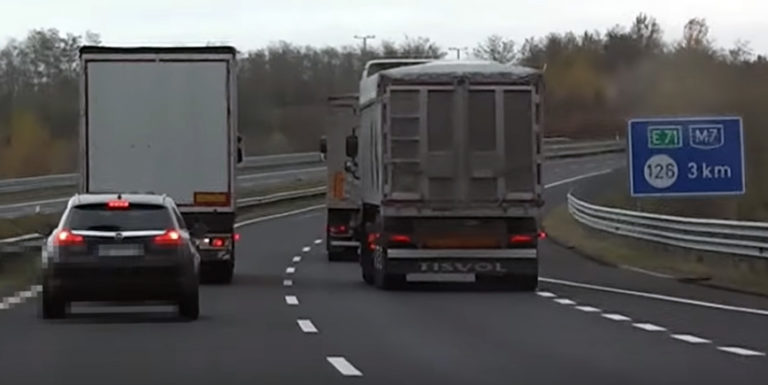 Az előzményeket nem ismerjük, de az biztos, hogy az autós valamiért bosszút akart állni egy vagy több kamionoson. Ez nem csak azért butaság, mert negyven tonna előtt normális ember nem fékez, hanem azért is, mert a kamionosok nem szeretik az ilyen vicceket.