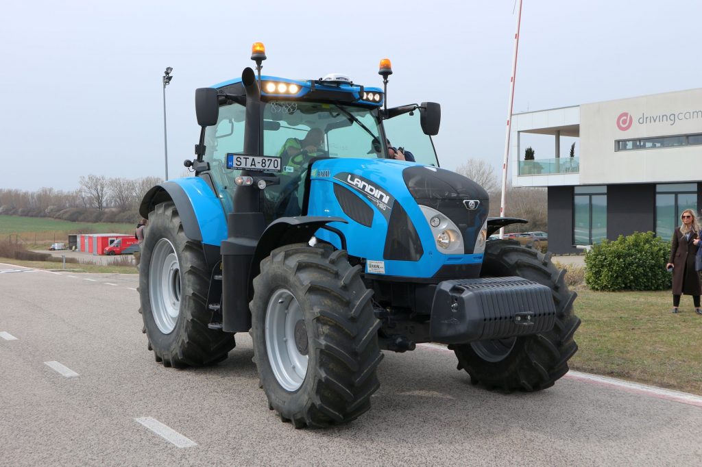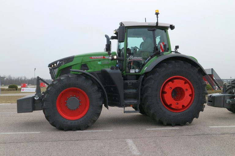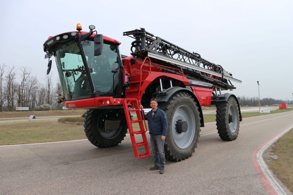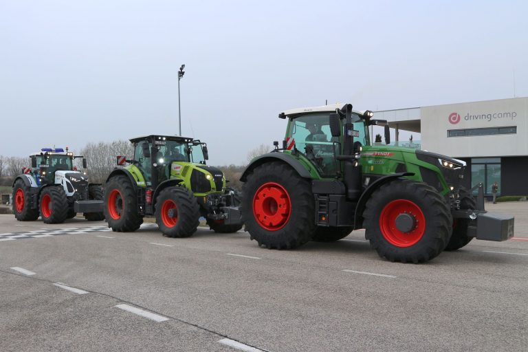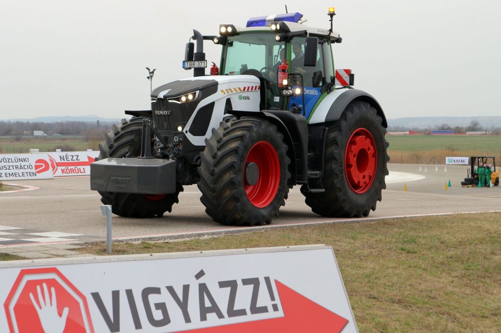 Az Óriáskerekű Permetező (mint egy Pom-Pom-figura) rutinpályás gyorstesztje után a vezetéstechnikai központ külső pályáján már traktorokkal száguldottam végig. A dupla mechanikus váltós, 170 lóerős kék, olasz Landini 7–180 is nagyon finom, nagyon precízen irányítható, kényelmes, gyorsan átlátható-megtanulható kezelőfelületekkel ellátott gép, de a 330 lóerős Fendt Vario 933-as végképp egy traktoros-álom.