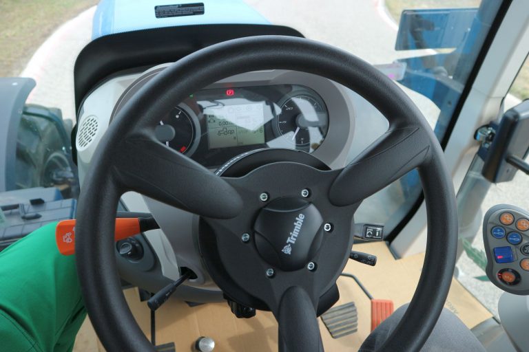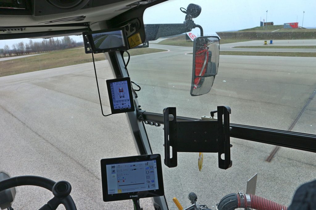 A kormányzás, a vezetés is nagyon könnyű, de egy igazán modern traktorban már ilyesmivel se nagyon kell foglalkozni. A Trimble nevű cég irányítórendszerével felszerelt, az Axiál két centi pontosságú, négy globális műholdas rendszert használó helymeghatározó szolgáltatására támaszkodó traktor, miután az instruktor meggyőzött, hogy de tényleg, bátran, nem fogunk meghalni, elengedett kormánnyal szlalomozott, kanyarodott, állt meg a meredek rézsű előtt és tolatott rá a pótkocsira. A közúton, a szériaautókban még csak bizonytalan ígéret az önvezetés, de a végtelen szántókon, ahol viszonylag kevés a labdáért futó gyerek, a piros lámpa és a részeg biciklis, semmi nem akadályozza az emberi beavatkozás nélküli munkavégzést akár órákon át.