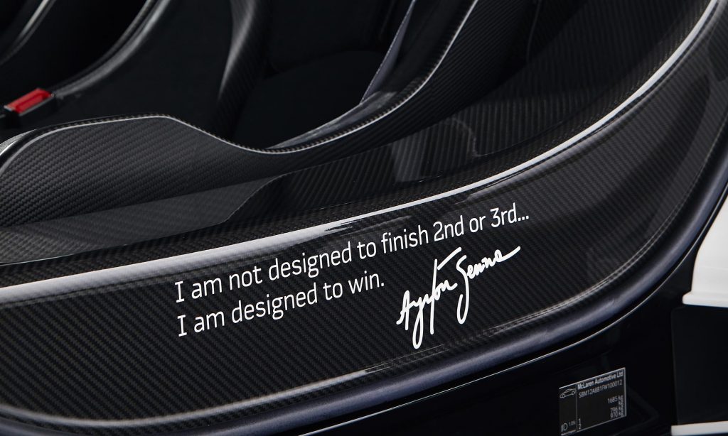 A legendás brazil pilóta, akinek egyik emlékezetes mondata is díszíti ezt a P1-et, összesen 161 Formula–1-es futamon indult, ahol 61 pole pozíciót és 41 győzelmet szerzett, három világbajnoki címmel a háta mögött 1994-ben vesztette életét a San Marinói nagydíjon.
