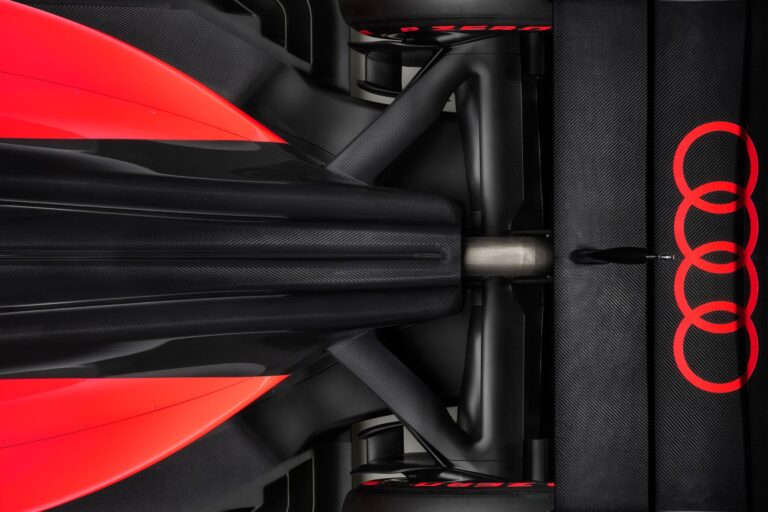 A színpaletta a titánszürke, a mély karbonfekete és az élénk vörös Audi-piros hármasára épül, ami garantáltan azonnal felismerhetővé teszi az Audit a mezőnyben (persze a többi istálló 2026-os színvilágát nem ismerjük) – a négy karikás embléma is ebben a pirosban pompázik, hangsúlyozva a márka eltökélt jelenlétét a sportágban.