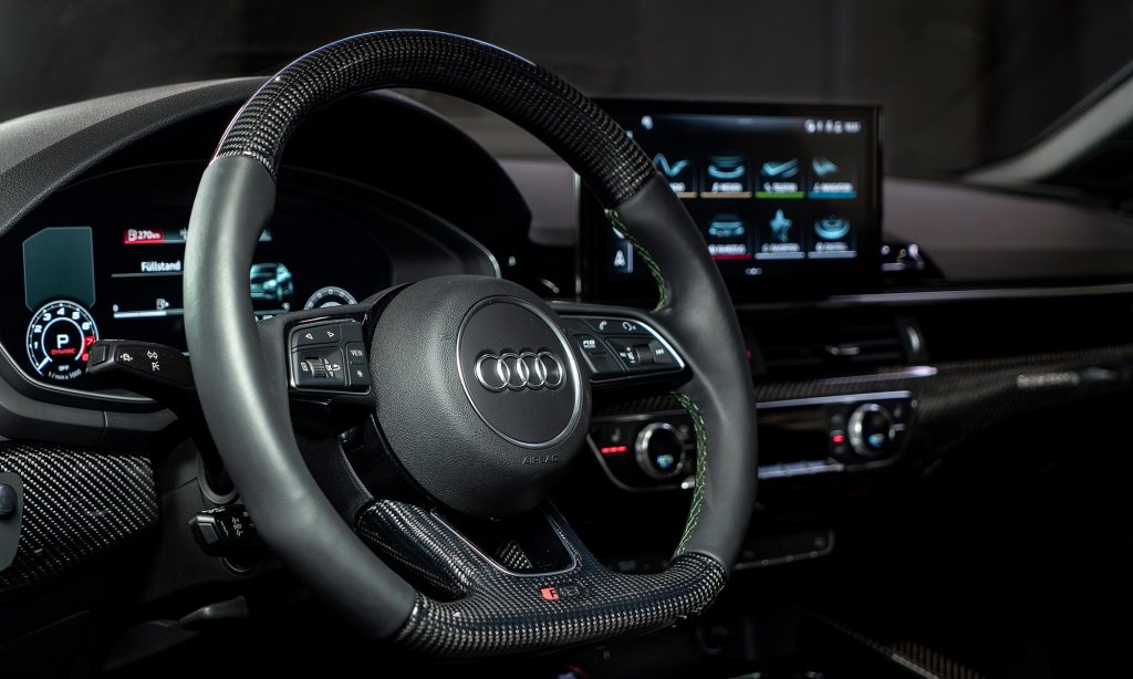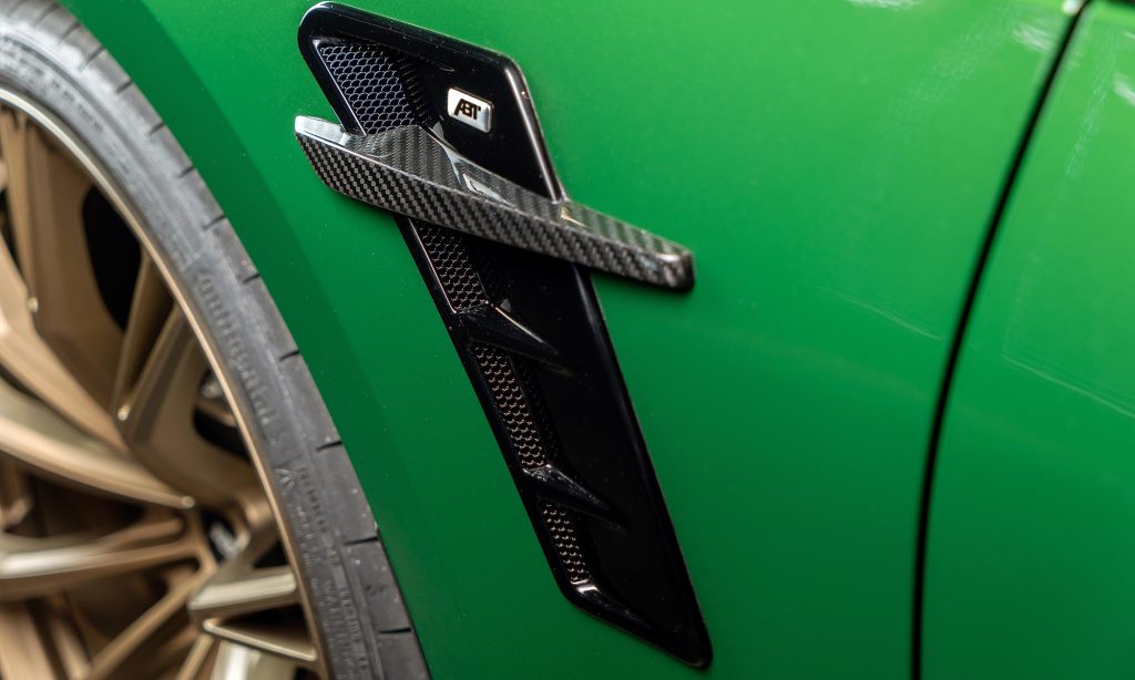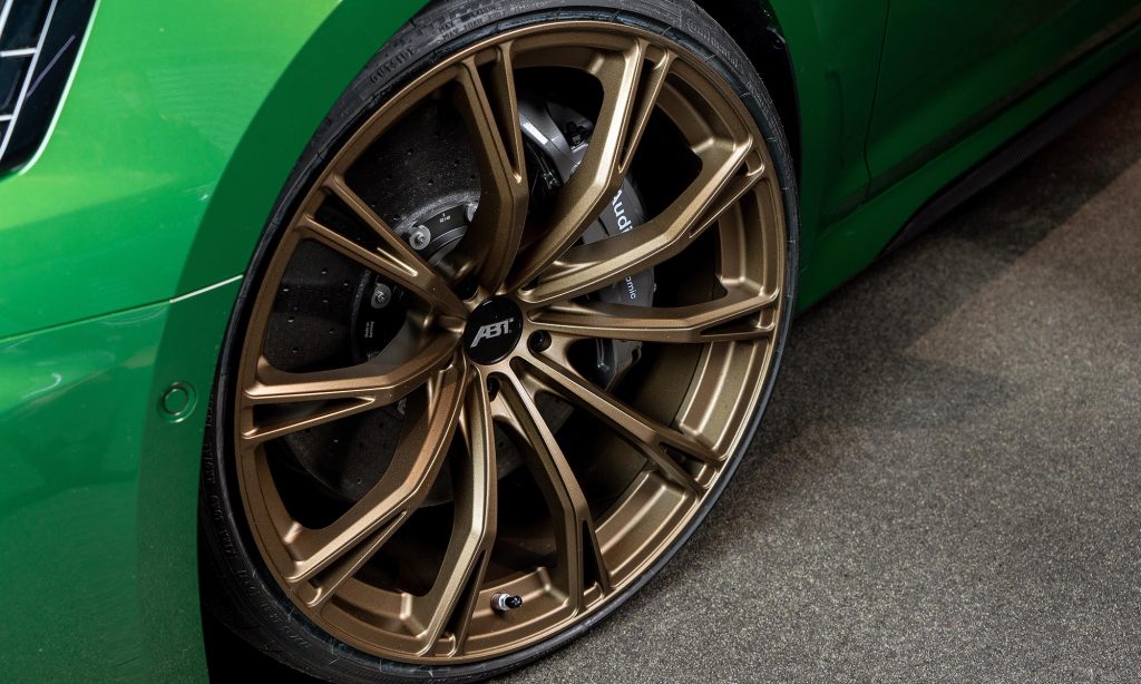 erről a Sonoma zöld fényezés és a 21 colos, aranyszínű kerekek gondoskodnak. A szénszálas anyagból készült légterelőkkel és szárnyakkal ékesített sportkupé futóművét is leültették 25 milliméterrel, hogy még jobban vágyjunk az Abt által tuningolt RS5 Coupéra.