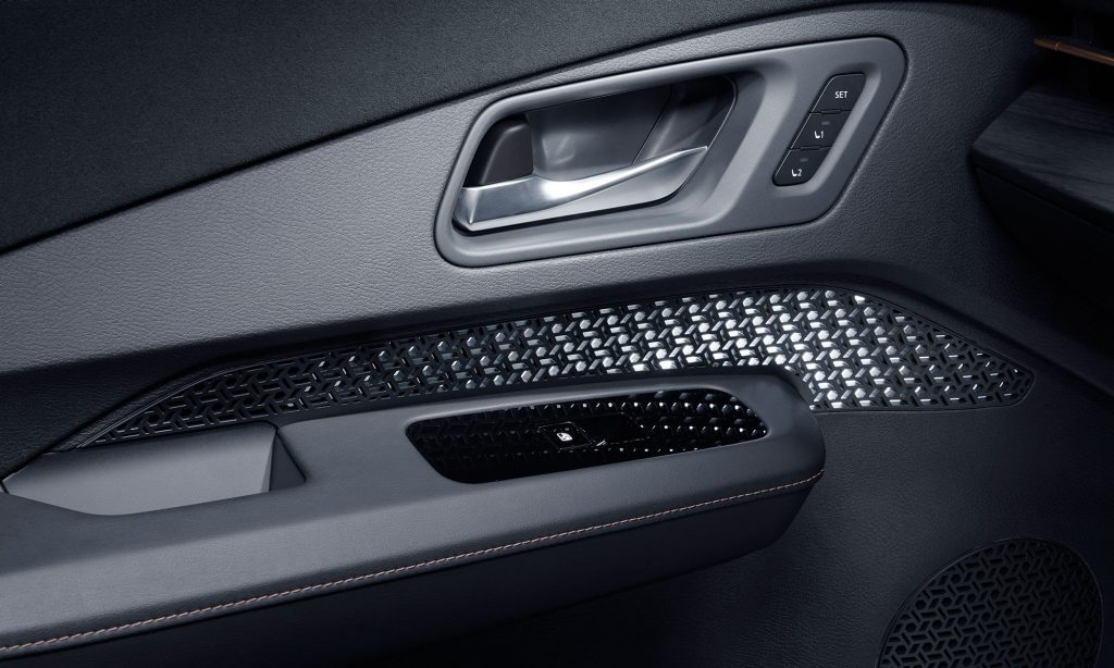a műszerfalra pedig hagyományos kapcsolók helyett háttérvilágítású kapacitív érzékelőket terveztek, amik érintéskor rezegnek. A csúsztatható középső konzolon is hasonlókat találunk, a kézbe simuló formájú irányváltó kar is ide került.