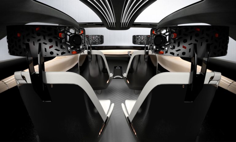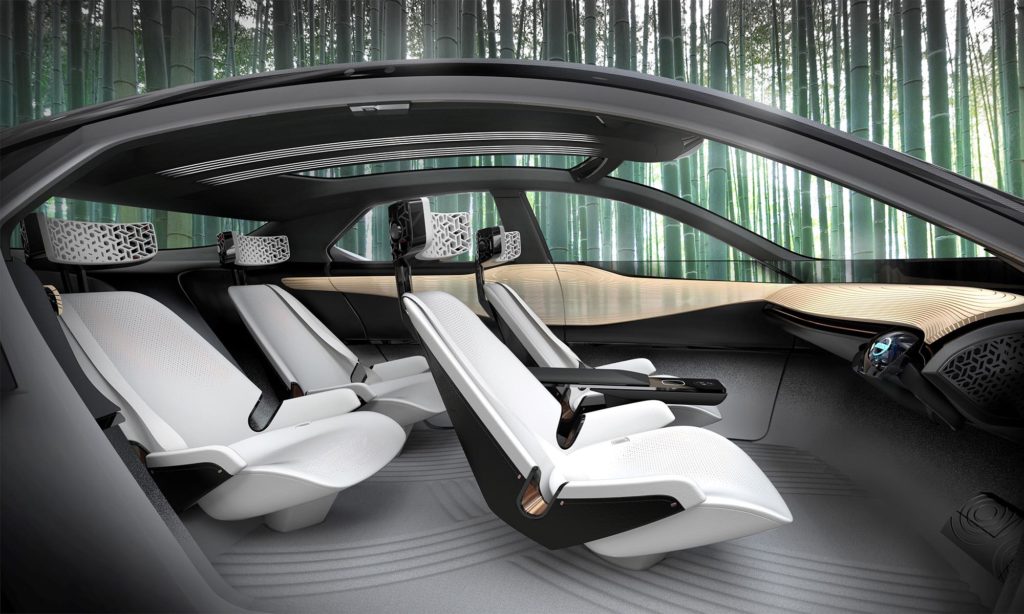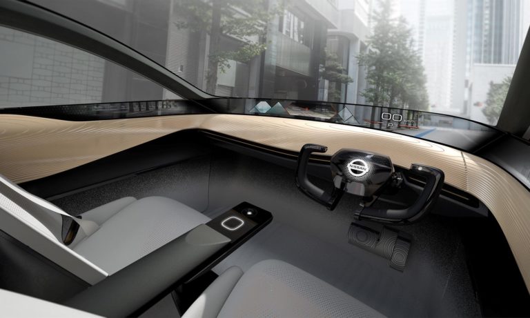 A koncepciósan kétfelé nyíló ajtókon át pedig olyan utastérbe léphetsz, ami tényleg a jövőautókat idézi. Az alapötlet az volt, hogy mire az IMx Concept valóra válik, addigra a Nissan ProPilot rendszere már teljesen átveheti a vezetést, ezért a jelzésértékű kormánykerék visszahúzódhat, a négy darab különálló ülést pedig fekvő pozícióba lehet hajtani. A műszerfal OLED kijelzős, az utasteret körbevevő faborítás pedig a japán papír térelválasztókat idézi.