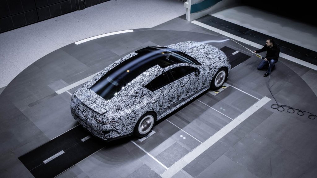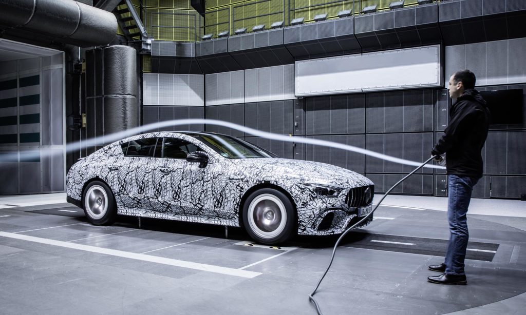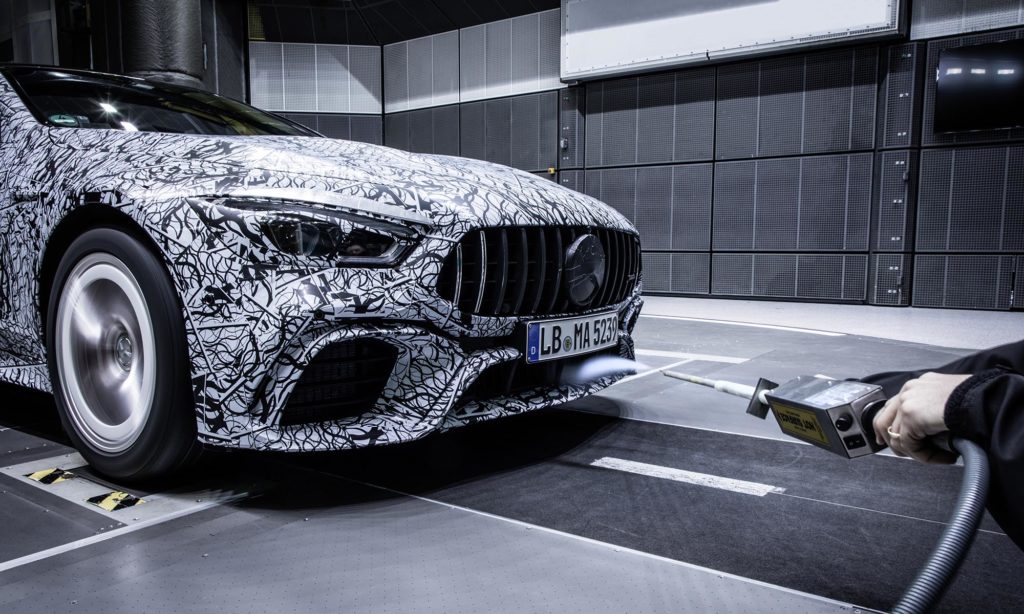 A szélcsatornában fotózott AMG GT-ről látszik, hogy melyik típust tekinti ellenfelének, hiszen amellett, hogy szemből a modellcsalád többi tagjára hasonlít, a vonalvezetése a Panamerát is eszünkbe juttatja, és a 4 literes biturbó V8-as AMG GT nehezebb időket hozhat a Porschére. Genfben ott leszünk, és megmutatjuk nektek álca nélkül is a gépet.