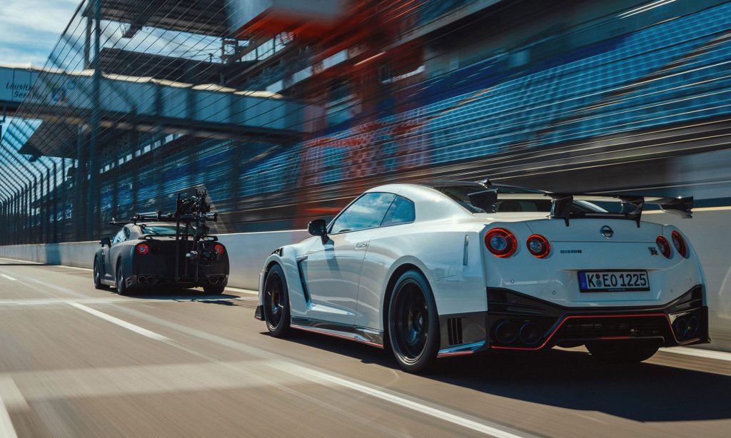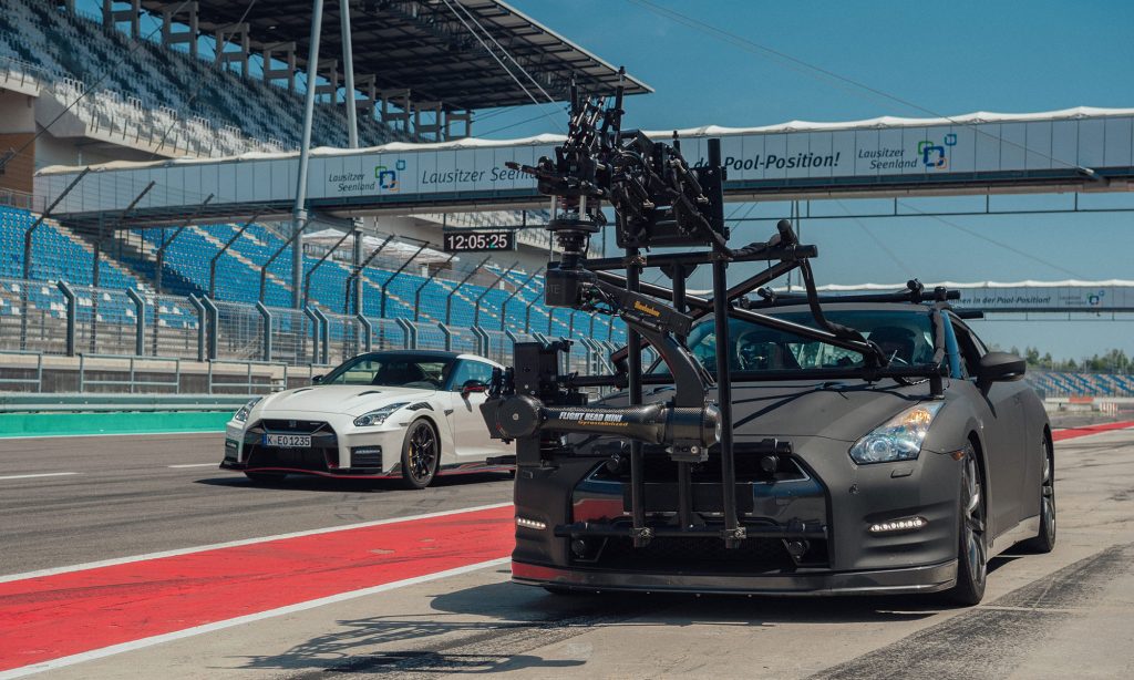 A Nissan meg is mutatta, mire lehet használni egy ilyen gyors kamerás autót: például arra, hogy a legújabb GT-R Nismo felvételeit elkészítsék vele a németországi Lausitzringen.
