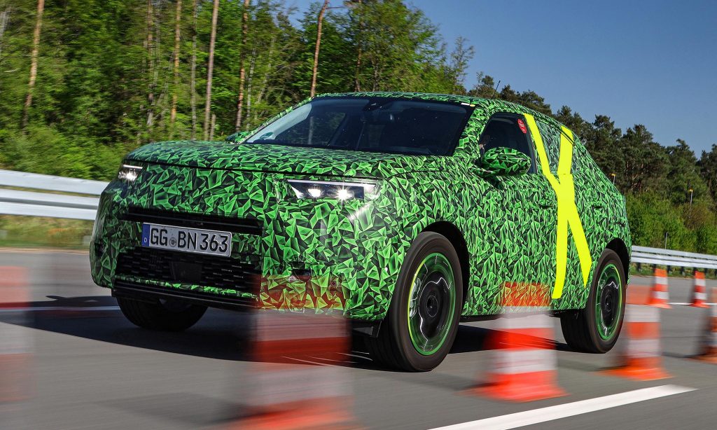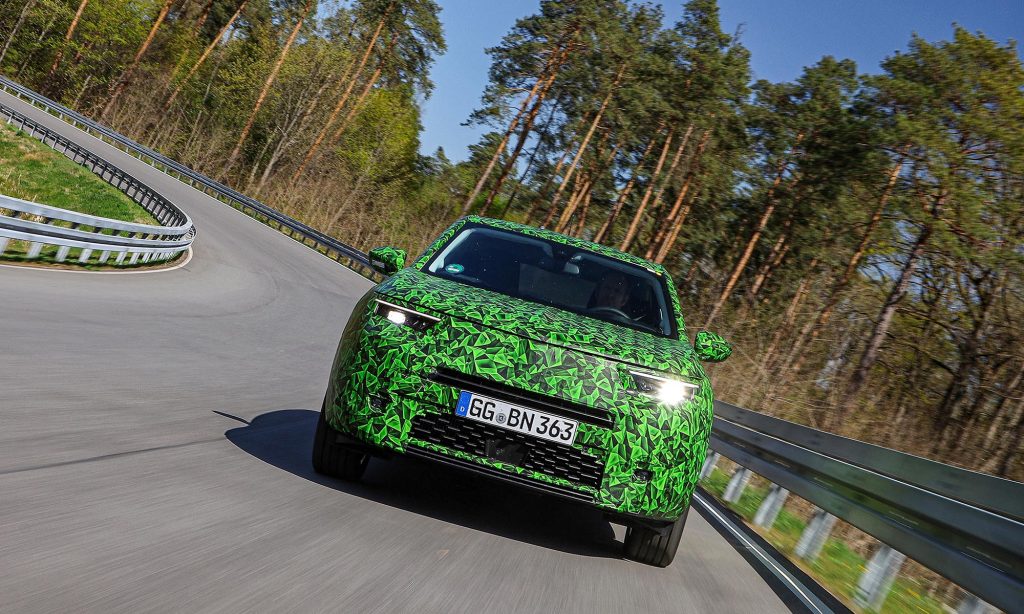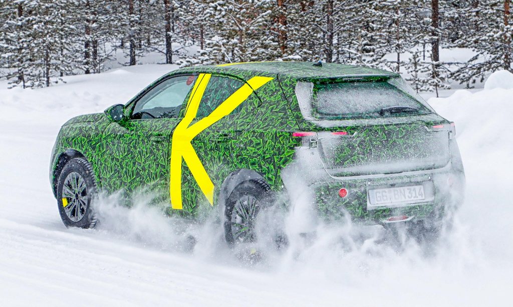 Az Opel álcázva már megmutatta a Mokka új generációját, amiből tisztán elektromos hajtású is lesz, és a márka új stílusa is ezen a modellen jelenik meg.