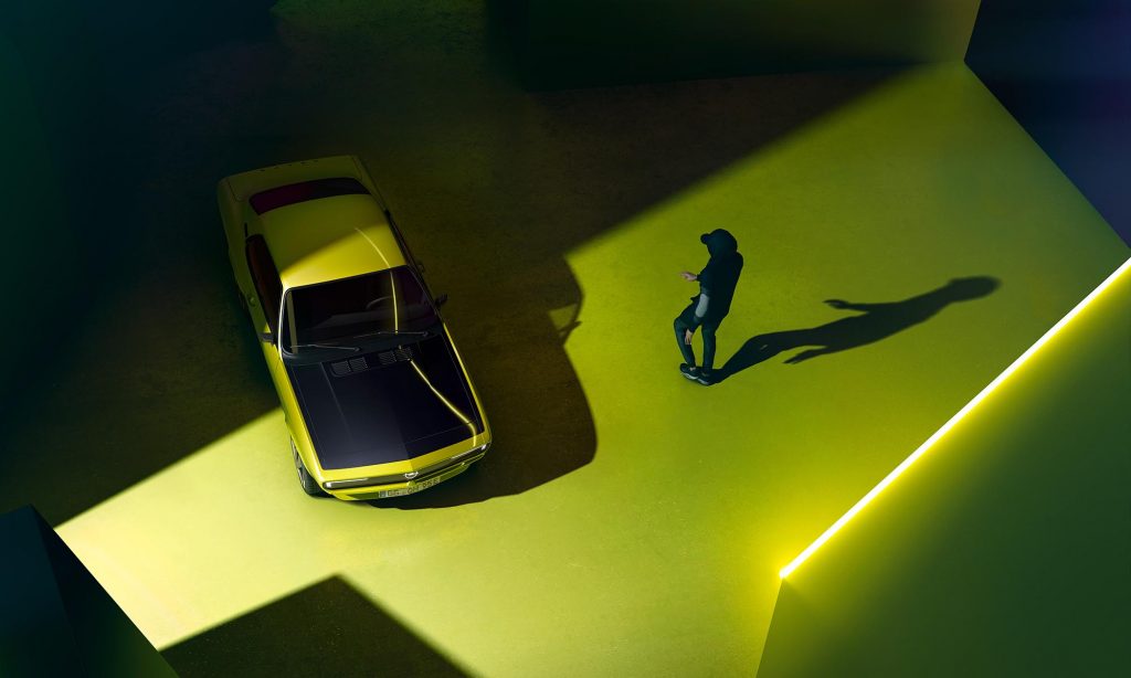az Opelnél ugyanis bejelentették, hogy a legendás sportkupé elektromos változatán dolgoznak. A Manta GSe ElektroMOD névre keresztelt prototípus egyedi darab lesz, jellegzetes sárga színben, fekete motorházfedéllel, és az előzetes fotója szerint a Mokkához hasonló modern fényszóró kerül rá.