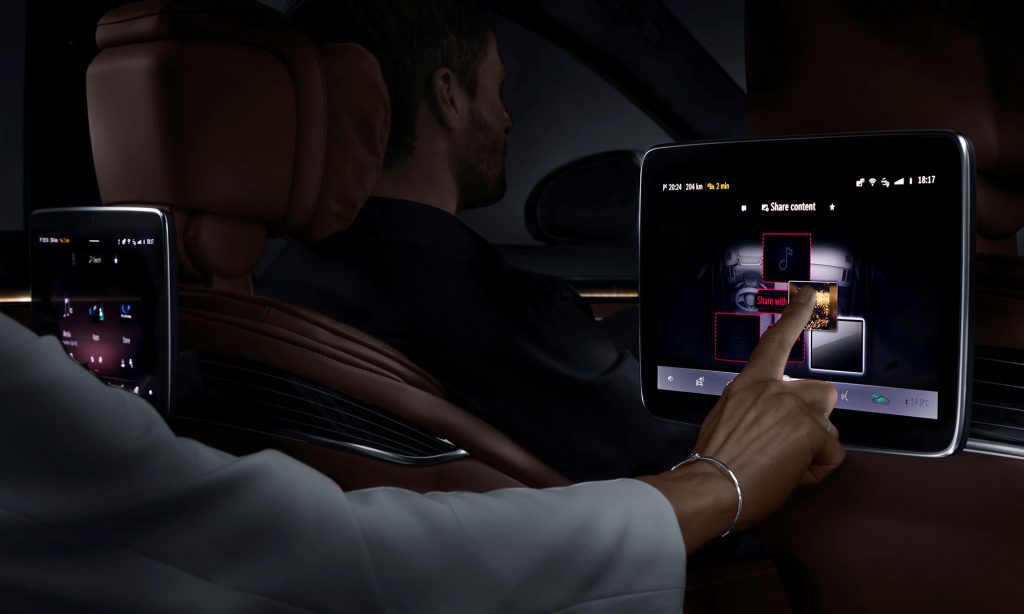 A hátsó ülésekhez még három érintőképernyő került, ahol tévét nézni, internetezni lehet, de a sofőr is egyszerűen megoszthat tartalmat az elsőről a hátsó kijelzőkre. A legizgalmasabb mégis az utastéri asszisztens lesz, ami