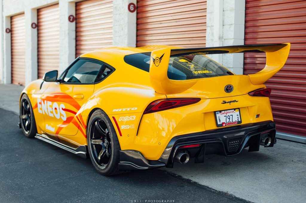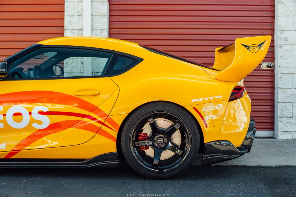 A Supra ezzel már tényleg olyan dögösen néz ki, mint az előző generációja, a képhez a sárga fényezésen kívül a Rays kerekek is hozzátesznek.