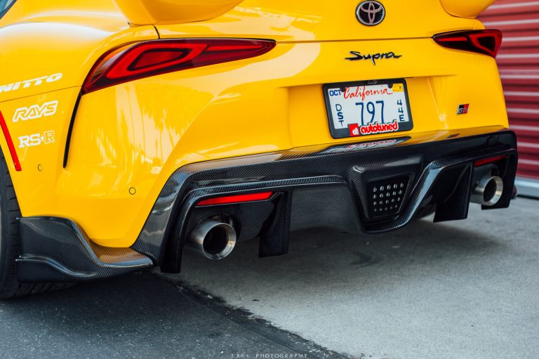 A kaliforniai Auto Tuned munkája ez a Supra, ami szénszálas anyagból készült első légterelőt, küszöböt és diffúzort kapott,