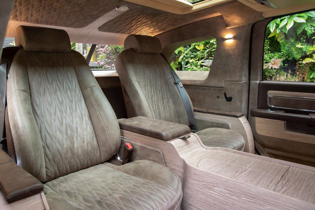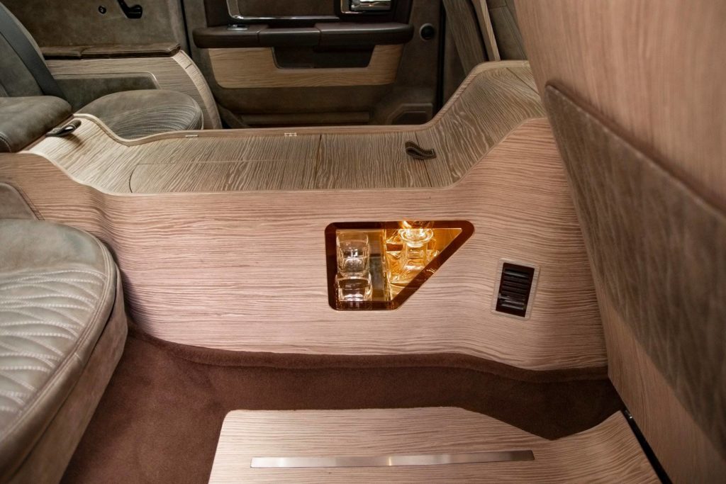 Már a formája is erősen megszokást igényel, hiszen a platóját teljesen beépítették, méghozzá a tágas utastérrel, ezért oldalról nézve szedánnak tűnik az Atulux, miközben megtartotta terepjárós arányait. A barnára fényezett autó belsejét puha anyagokkal vonták be, hátul pedig két kényelmes fotelben pihenhetsz, vagy kihasználhatod azokat az extrákat, amelyeket más luxusautókban aligha lehet megtalálni.