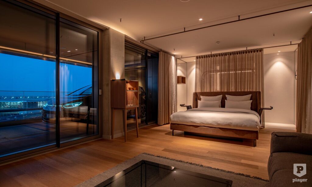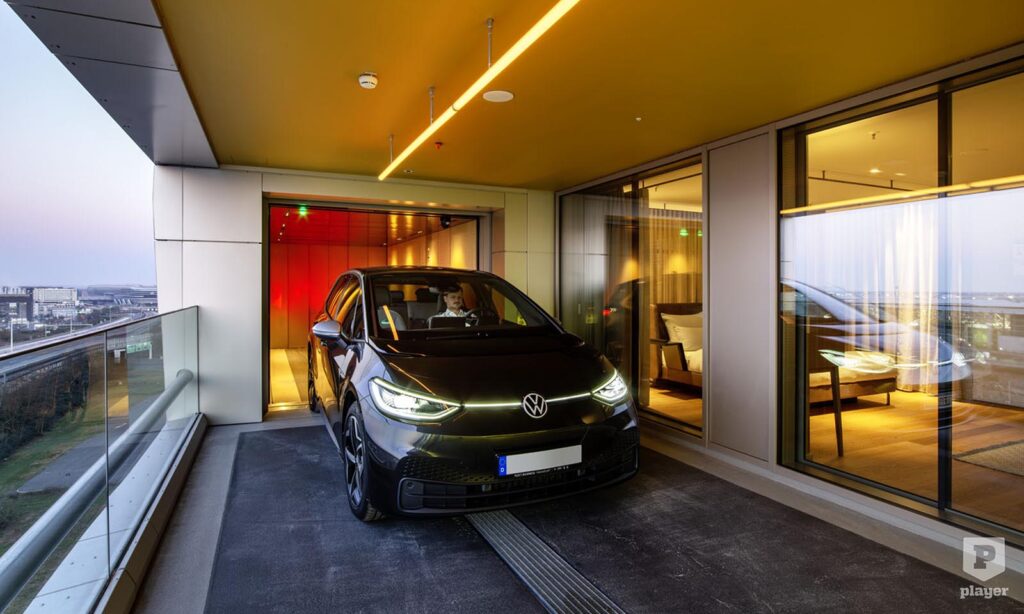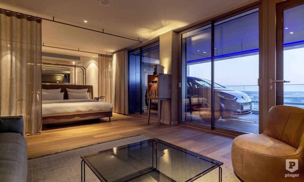 Ha a parkolóban úgyis mindig visszanézel az autódra, akkor itt egész nap gyönyörködhetsz benne, ha pedig a frankfurti hotelben a hatodik emeletnél magasabb szintre kéred a szobát, akkor még a reptérre is lesz kilátásod. Az autós szobában 250 euróba kerül egy éjszaka, ami 100 ezer forintot jelent, és az erkélyen elektromos autó töltésére is lehetőség van.