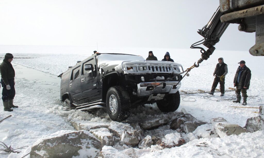 Szemtanúk szerint először az autó eleje bukott a jég alá, nem is meglepő, a hatliteres, öntöttvas Vortec V8 miatt vélhetően ez az autó nehezebbik vége. Aztán a hajtáslánc és a kipufogó hője megolvasztotta a hátsó tengely alatt is a jeget, így az is behuppant a vízbe. Az utastér állítólag kifejezetten lassan telt fel vízzel, végül aztán a kormányt is elérte. Aznap -10 fok alatt volt a hőmérséklet, így viszonylag hamar be is fagyott. További problémát jelentett, hogy a csomagtartóban volt egy kutyakennel, két kutyával, őket is ki kellett szabadítani, viszont a csomagtartó nem nyílt a rányomódott jégtábla miatt. Ezt össze kellett törni, belökni az autó alá, így már ki tudták szedni a kutyákat. A Hummereknek végül egy amolyan csatornát vágtak a jégpáncélba, és ezen át vontatták ki őket. Érdekes, hogy hiába a fagyás, a tologatás a jégtáblák között, a fényezés sértetlen.