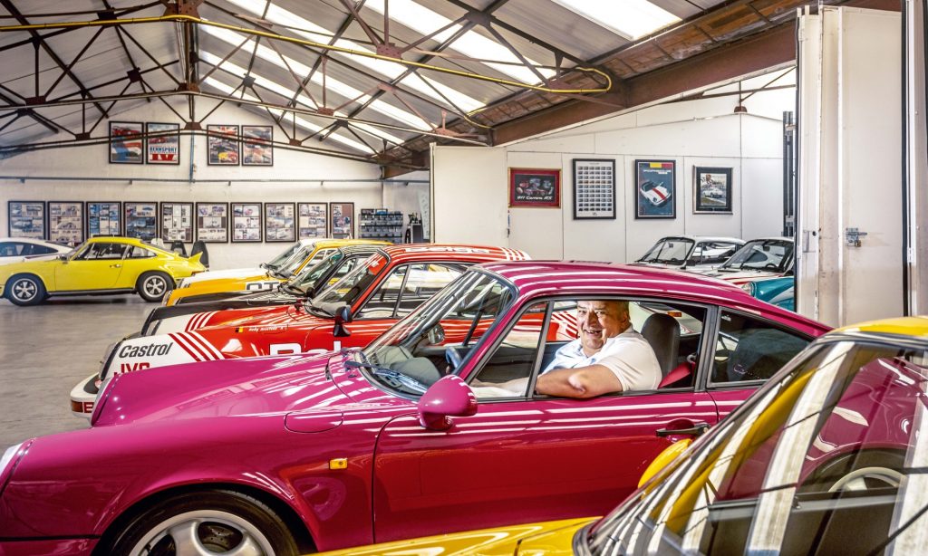 Régi rendőrautó és versenygépek is állnak a garázsban, a gyűjtemény Szent Grálja viszont egyértelműen az 1967-es évjáratú 911 R, melyből csak 20 darab készült. Nem csak léghűtéses 911-esek, hanem az első vízhűtéses, 996-os generációból is áll itt egy 911 GT3 RS.