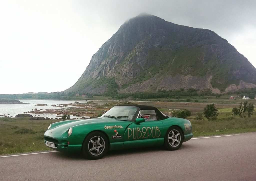 A világ leghosszabb kocsmatúrájára is elég különös autót választott, egy TVR Chimaera volánja mögött indult útnak. A brit sportkocsigyártó éppen mostanában készül feltámadni, de ez az 1992-től 2003-ig gyártott, Rover V8-assal szerelt típusa nem éppen megbízható hírében áll. Mégis nekivágott vele, hiszen már öt éve nála van az autó, és most is csak egyszer kellett kuplungot cserélni rajta, míg például korábbi túráján a Porschével vagy tucatszor lerobbant.