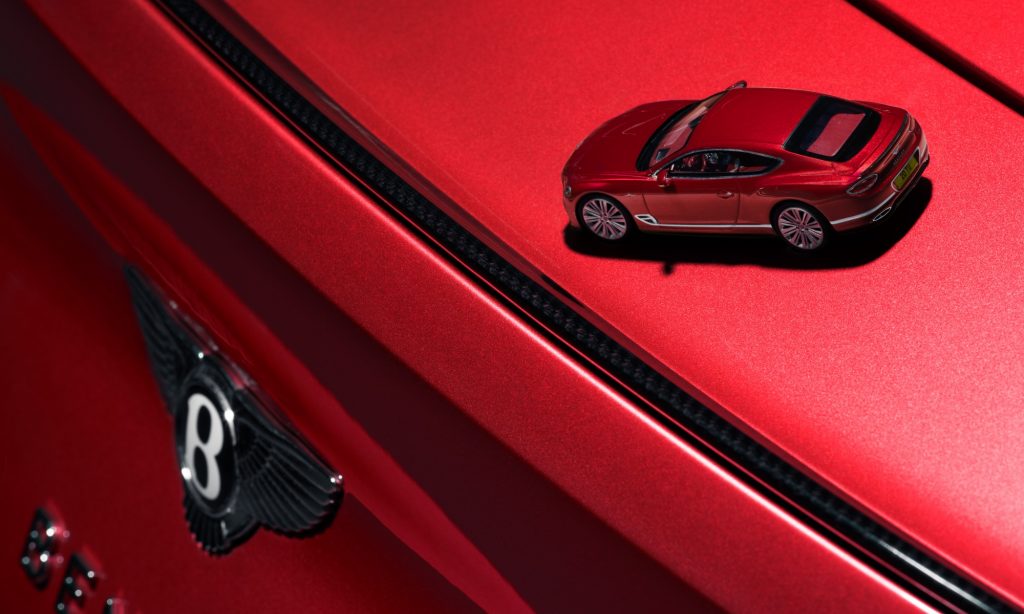 Cukorkavörös színével még 1:43-as méretben is azonnal feltűnik a Continental GT Speed.