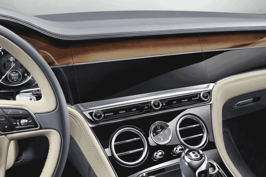 A műszereket kijelző vetíti, és a középkonzol éke a 12,3 colos, retinafelbontású érintőképernyő, amire a Bentley legújabb infotainment rendszere került, tetszés szerint konfigurálható kezdőlappal és Apple CarPlay okostelefon-tükrözéssel. De ha zavar a modern képernyő, beforgathatod a műszerfalba, mint James Bond a rendszámtábláját, a helyére egyszerű fabetét, vagy három klasszikus számlapos óra is kerülhet: egy hőmérő, egy iránytű és egy stopper.