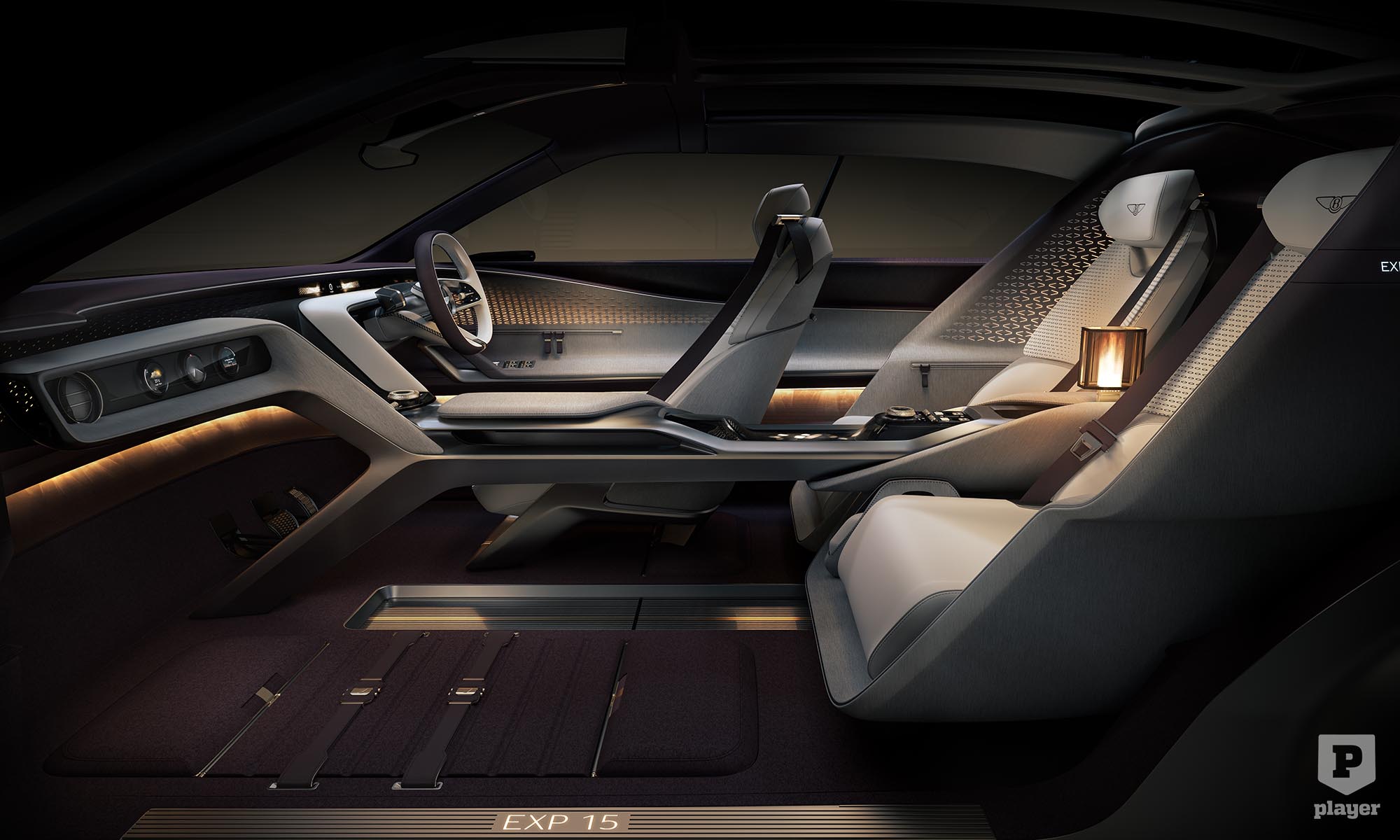 Újra feltalálta a luxus túrakocsi utasterét a Bentley az EXP 15-tel, hiszen a fedélzeten csak hárman foglalhatnak helyet, de ők a legnagyobb kényelemben.