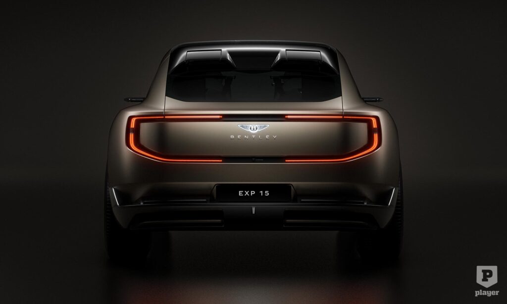 Új dizájnelem a hatalmas, megvilágított hűtőmaszk, amelynek közepére a Bentley megújult logója került, és a márkánál újdonságnak számítanak a függőleges menetfények, amelyektől még monumentálisabbnak tűnik az EXP 15. A lejtős hátsó szélvédő alatt fénycsíkkal kötötték össze a hátsó lámpákat, ahogyan mostanában divatos.