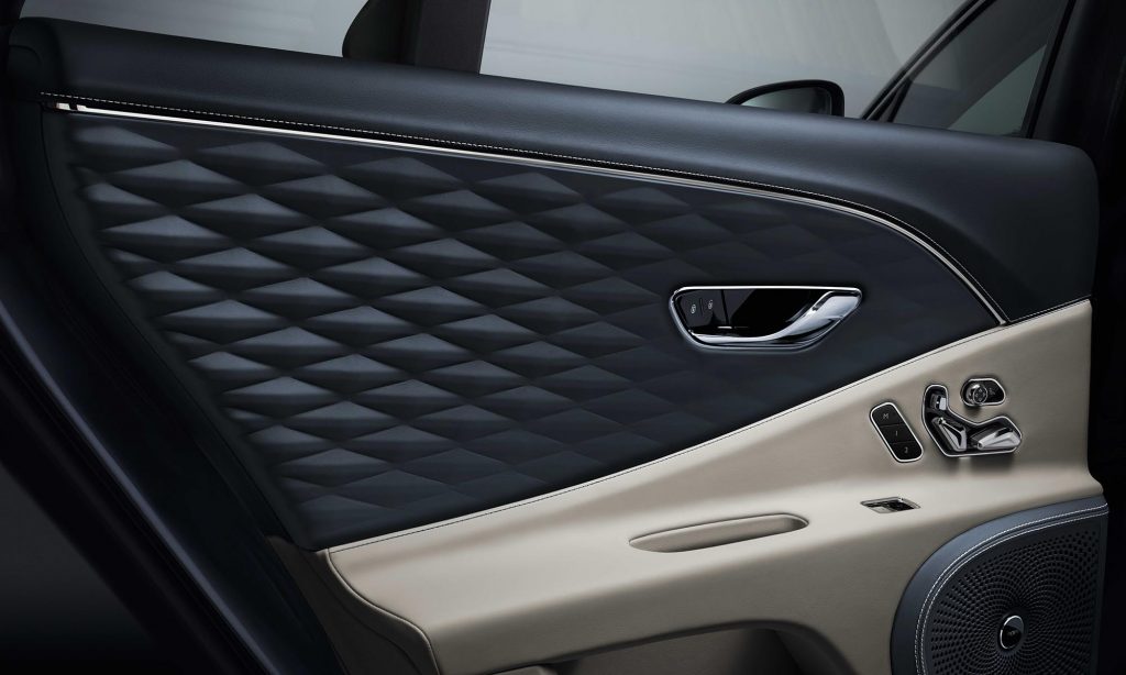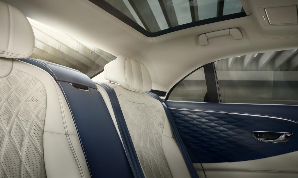 A legnemesebb anyagokkal borított belső tér érdekessége a gyémántmintára varrt bőrkárpit az ajtókon, itt is megvan a műszerfalba beforgatható 12,3 colos érintőképernyő, és a hátsó utasok külön panelt kapnak a klíma kezeléséhez.