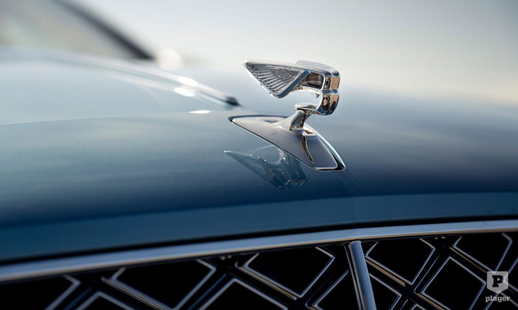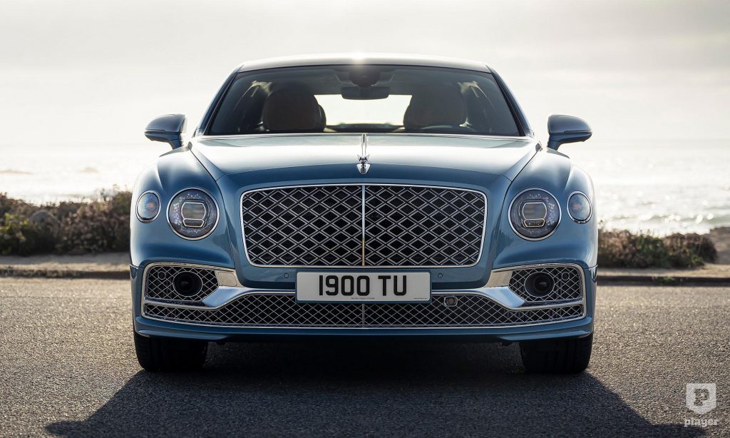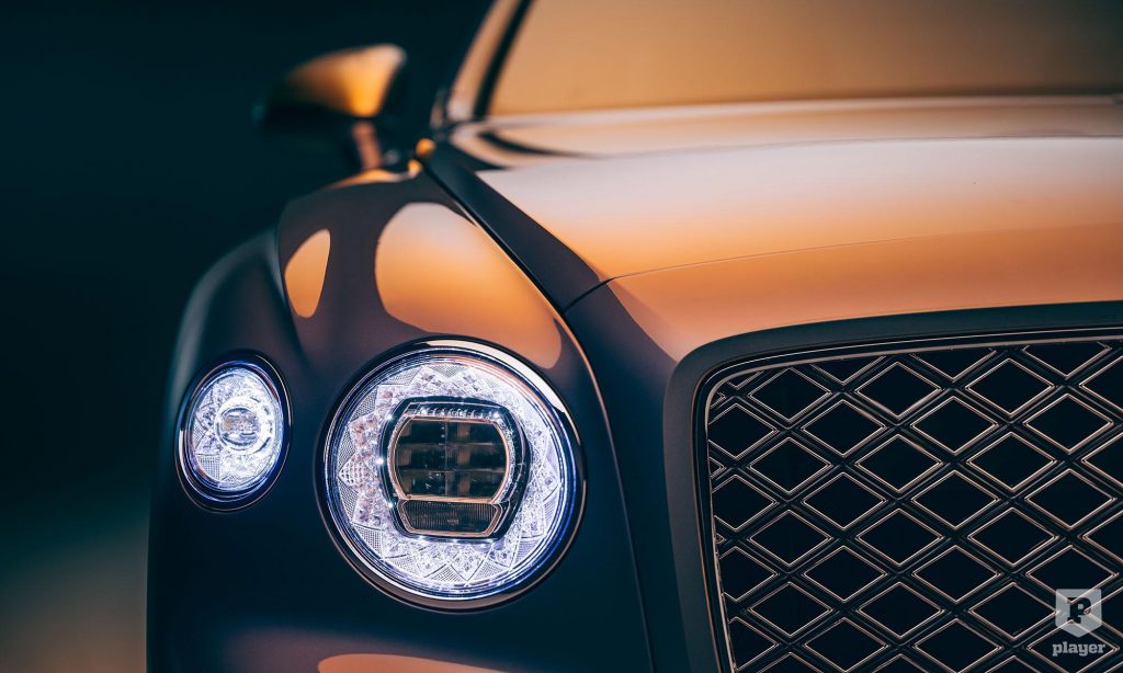 A Flying Spur Mulliner azonnal felismerhető az egyedi hűtőmaszkjáról, ami a Bentley elnevezése szerint kettős gyémántmintájú.