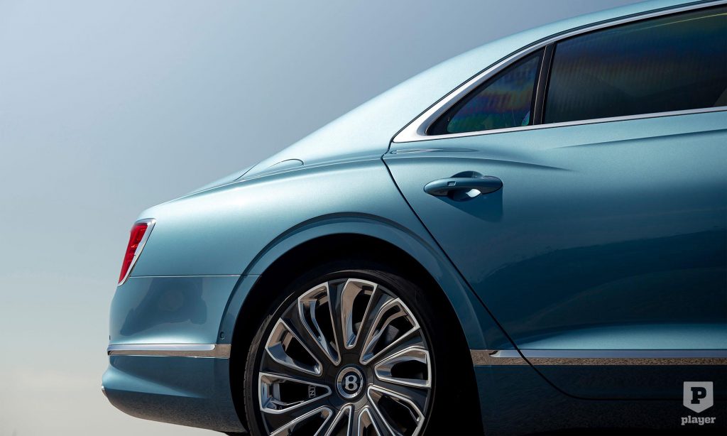 A 22 colos könnyűfém kerekek érdekessége, hogy a középen lévő logója menet közben is mindig függőlegesen marad, mint a Rolls-Royce-nál, az autó orrán lévő szárnyas B-betűs embléma pedig sejtelmes háttérvilágítást kapott.