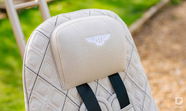 Kényelmesre párnázott ülésén éppen olyan gyémántmintában varrták a kárpitot, mint a Bentley autóiban, a fejtámaszba varrt emblémával.