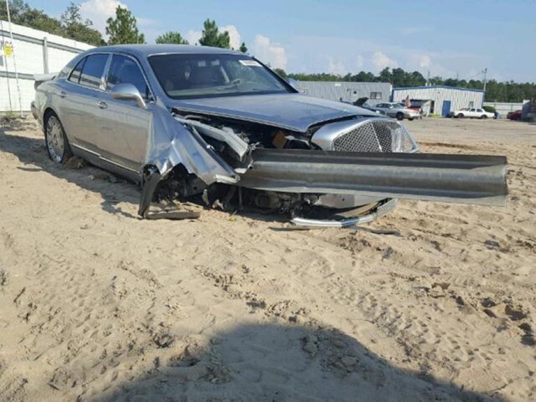 Nem tudni, mi történhetett ezzel a Bentley-vel, de az biztos, hogy a tulajdonosa már lemondott róla, hiszen egy aukciós oldalon hirdette meg. Csak annyit tudni, hogy szalagkorlátnak ütközött, hiszen a korlát még mindig benne van.