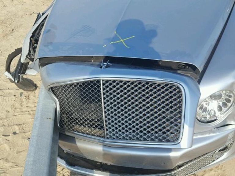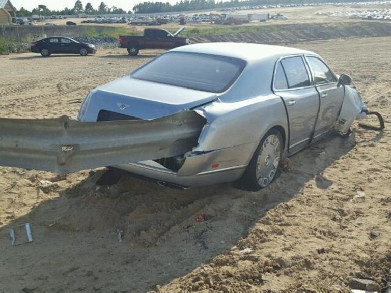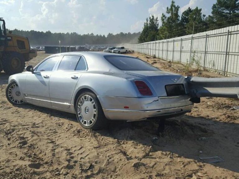 Teljesen felnyársalta a szalagkorlát ezt a Bentley-t, és egyelőre nem is nagyon törekedtek rá, hogy kiszedjék belőle. A 6,75 literes, 512 lóerős V8-assal szerelt Mulsanne a brit luxusmárka kínálatának legelegánsabb tagja volt, és az aukciós oldal szerint a 2011-es évjáratú limuzin még mindig 130 ezer dollárt ér, ehhez képest alig több, mint ötezernél tart a licit.