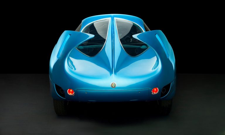 hogy Alfa Romeónak ismerjék fel, a Giulietta hűtőmaszkja is felkerült rá, de még ezzel is valósággal űrhajónak tűnt a Bertone autója.