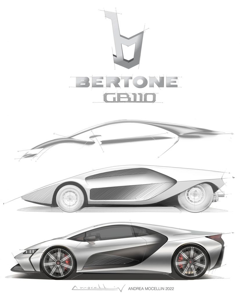 A hatvanas-hetvenes években olyan koncepcióautók kerültek ki a Bertone stúdióból, mint az Alfa Romeo Carabo, a Lancia Stratos Zero és a Lamborghini Marzal, és ezeknek a stíluselemei mind visszaköszönnek a Giovanni Bertone után GB110-nek keresztelt, a kilencvenes évek szupersportautóira emlékeztető alkotáson.