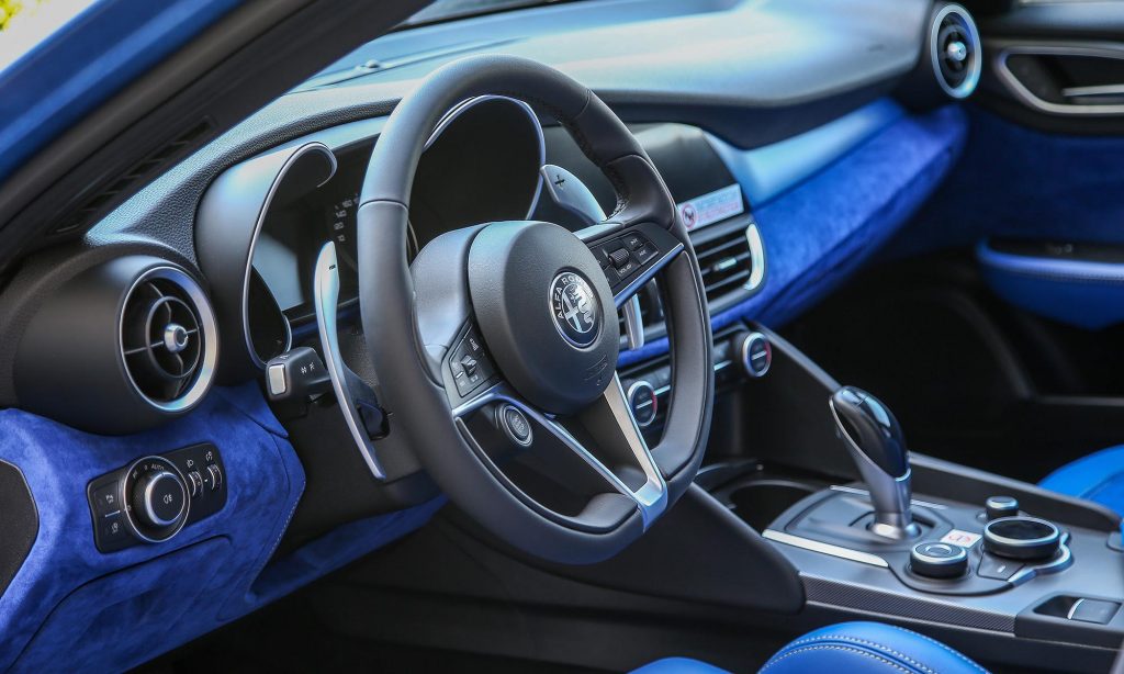 A freskós Giulia Veloce másról is felismerhető, mert egyedi lápiszkék fényezést, valamint Poltrona Frau és Alcantara kárpitot kapott. Nem egy tanulmányautó, három darabot is készítettek belőle,