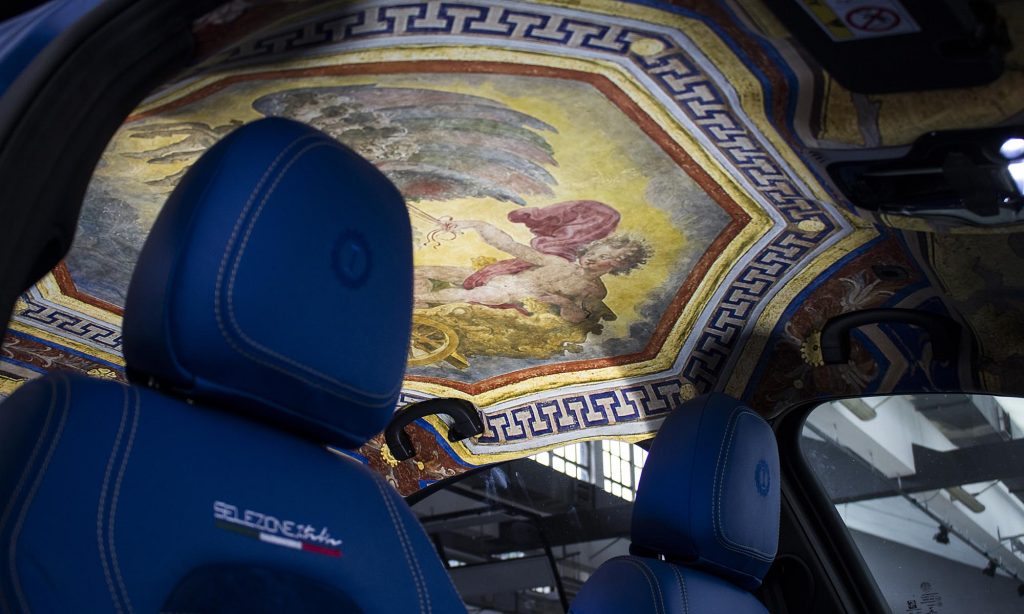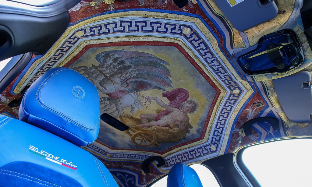 Szó szerint alkotásról van szó, a Grand Tour névre keresztelt Alfa Romeo Giulia tetőkárpitjára egy freskó került.