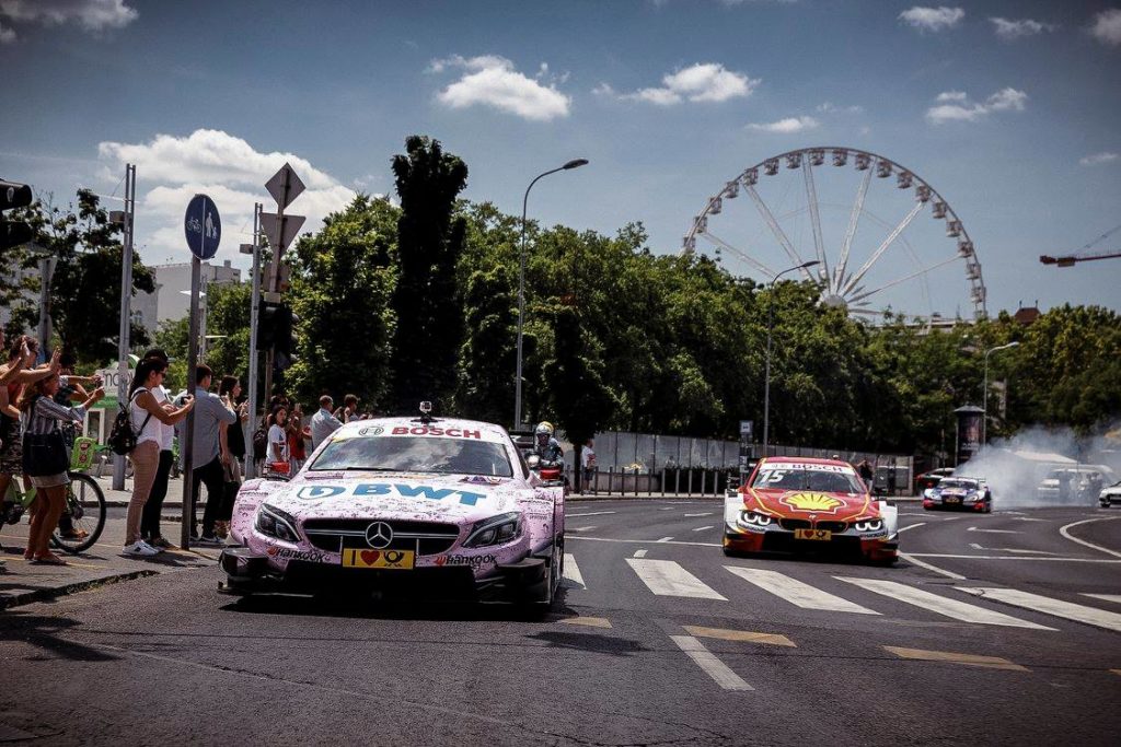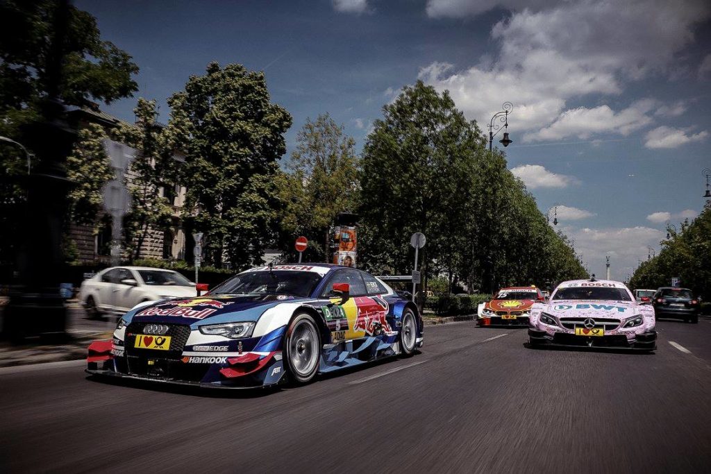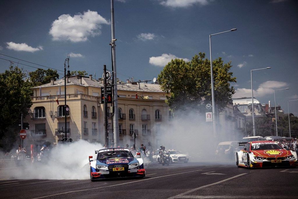 A szériamodellekre csak a formájukkal hasonlítanak – vagy még azzal sem – a DTM versenyautói, ezek a csővázas, középmotoros gépek, amiket 500 lóerős V8-as motorokkal szereltek, és a hangjuk valami földönkívüli. Ebből adtak ízelítőt némi gumifüsttel a belvárosban.