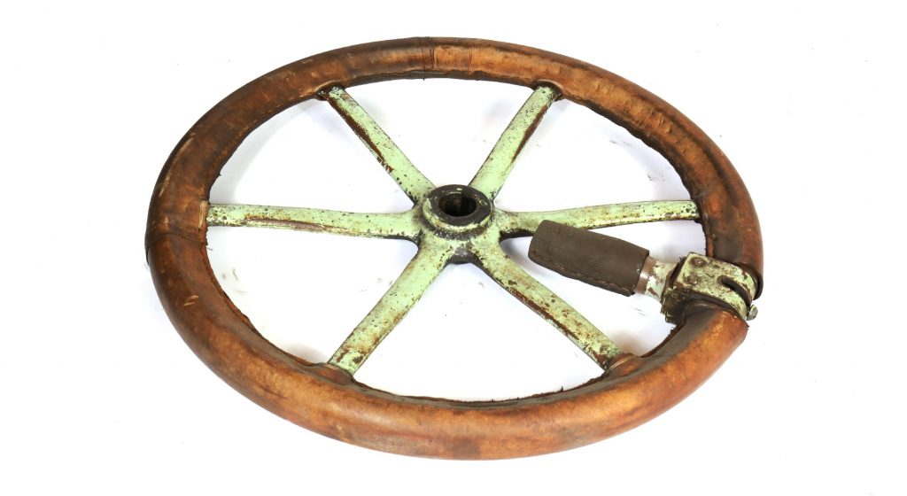 Másképp szép ez a patinás, még az eredeti bőrborítását viselő rögzítőfékkerék, amelyet 8900 forintos indulóáron kínálnak, és minden bizonnyal új gazdájánál új funkciót is kap majd.