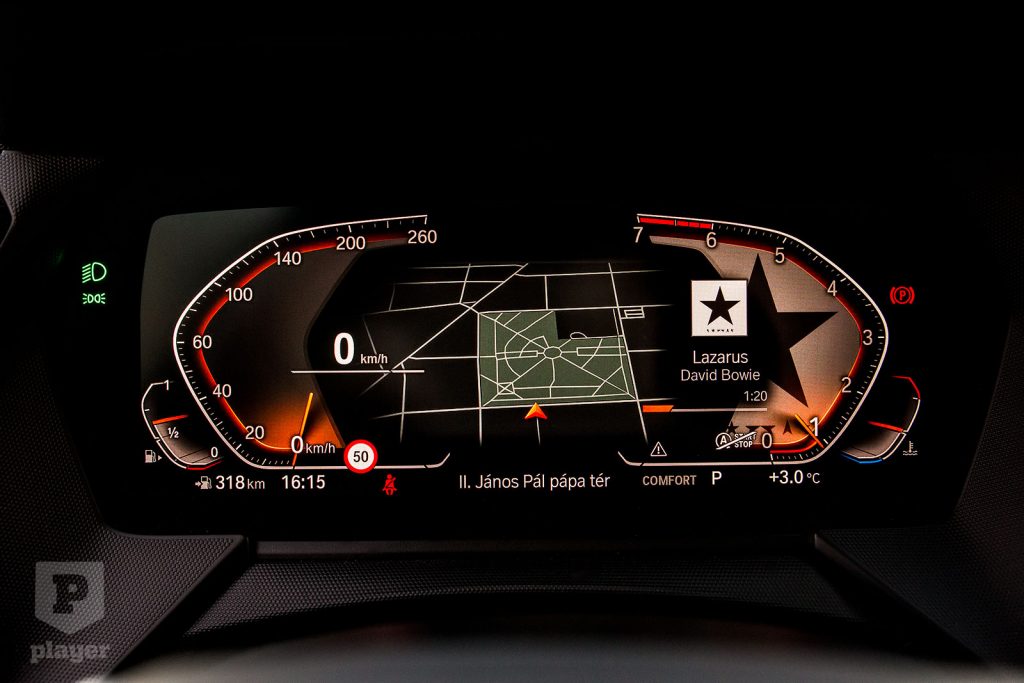 A 118i ma már nem meglepő módon nem 1,8 literes, hanem csak másfél, persze turbós, de nemhogy hat hengere nincs, négy se. Lassan leszokunk róla, hogy a háromhengeres motorról a Wartburgra asszociáljunk, a hangélmény még csak nem is hasonló, a hengerszámnak azonban a járáskultúrával is szoros a kapcsolata. Ez kigáncsolja a prémiumhangulatot, indításnál – ami a start-stop rendszer miatt ugye nem egyszeri alkalom egy út során – néha akkorát ránt, hogy az első alkalommal belenéztem a visszapillantóba, mert azt hittem, valaki megkoccantott hátulról. Biztos meg lehet szokni, de hát na.