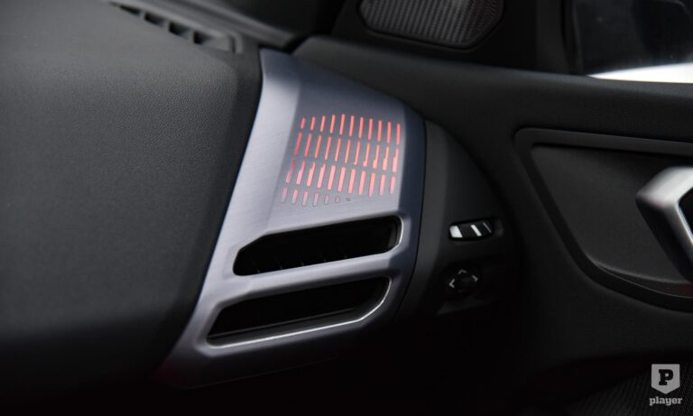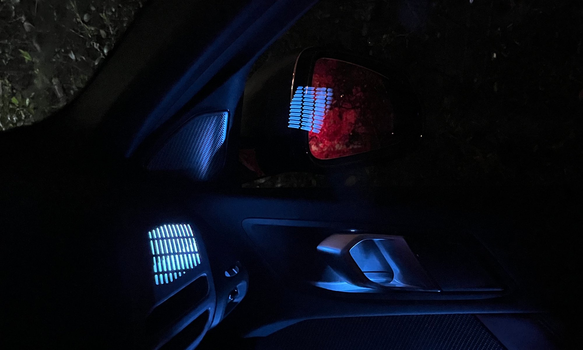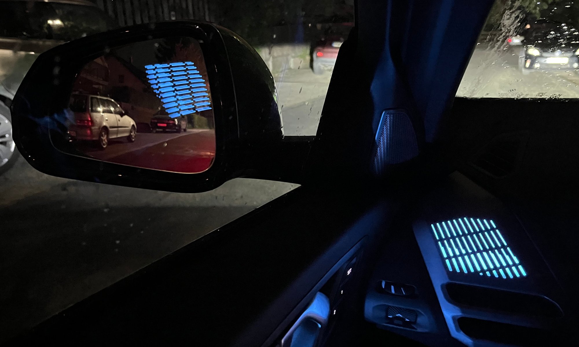 Ez a magyarázat az eddig talán értelmetlennek tűnő bekezdésre a tanuló-Škoda tuning-fordulatszámmérőjéről. A világító embléma már szinte közhelyes az iparágban, az egykor hasznos kilépőfény helyett újabban márkajelzést, mintát vagy egyebeket szokás vetíteni a kocsi mellé a talajra, a BMW viszont feltalált valami újat: a külső visszapillantók unalmát a szó szoros értelmében színesítő fényrácsot. Semmi utólagos berhelés, ez gyári megoldás, alapáron. Köszönjük.
