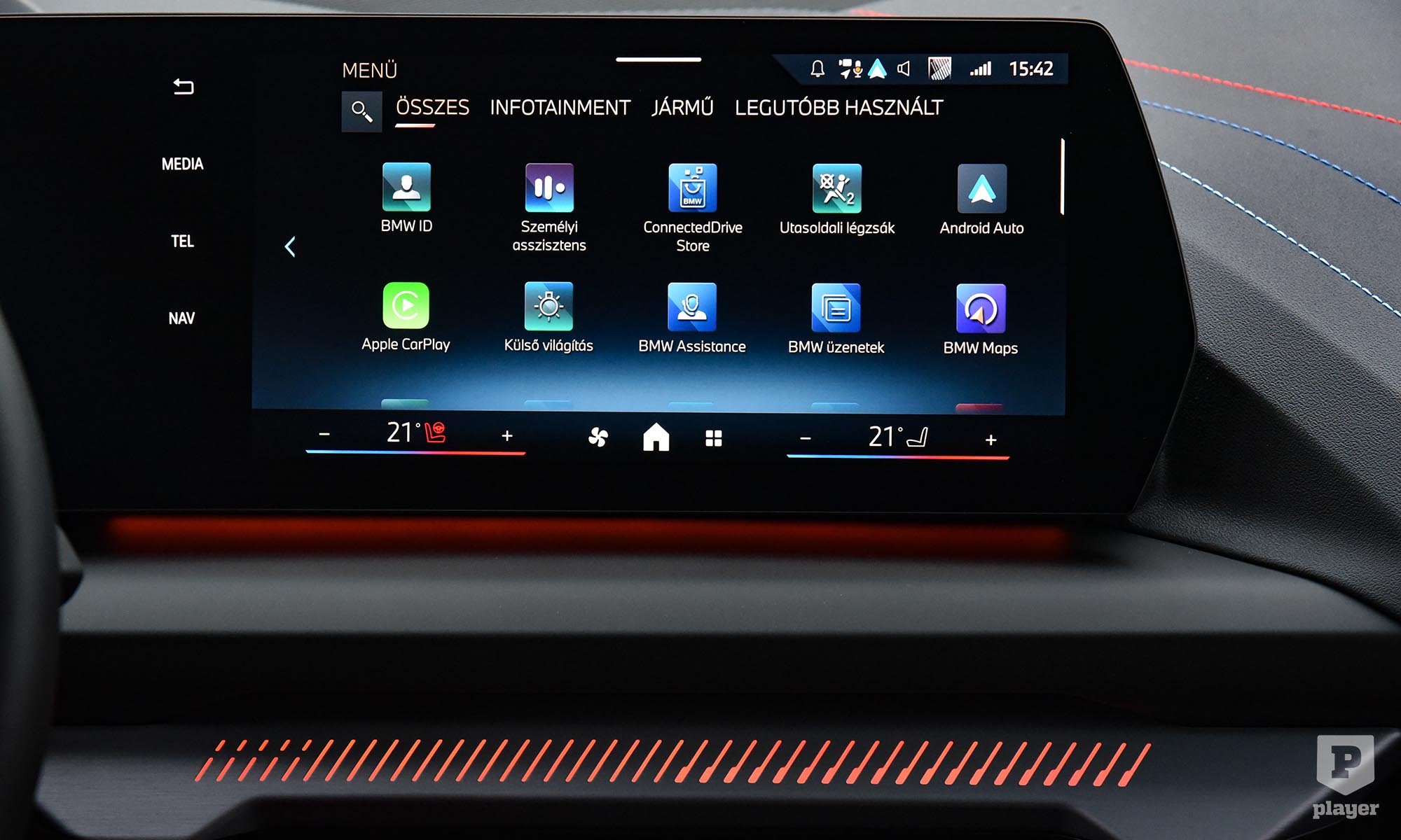 Kicsit változott a far is, ez a hátsó lámpánál a legfeltűnőbb, nemcsak a fénymező változott, hanem a búra alakja is, jól áll neki a bevágás alulról. A lökhárítóba benyúló diffúzor az M Sport csomaghoz jár, az alapkivitel sokkal szolidabb. A mai BMW-k között viszont még M-esítve is egész konzervatív az összkép – bizonyára felmérték, hogy ez a célcsoport számára inkább pozitívum, mint szomorú tény.