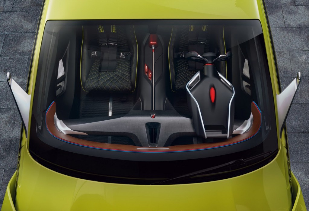 A belsőhöz képest viszont a külső csak egy finoman kellemes forma. A szinte kizárólag szénszál-erősítésű műanyagból építkező utastérben egyetlen farész van, az viszont teljes szélességű, nem csak merevít, díszít is. Az infotainment-kijelző a kormánykeréknek nem, csak kormánynak nevezhető eszköz oszlopára került, de a kis monitoron sincs semmi felesleges, csak a sebesség, a hathengeres benzinmotor fordulatszáma és az aktuális sebességi fokozat kijelzése.