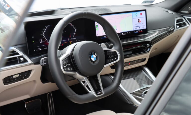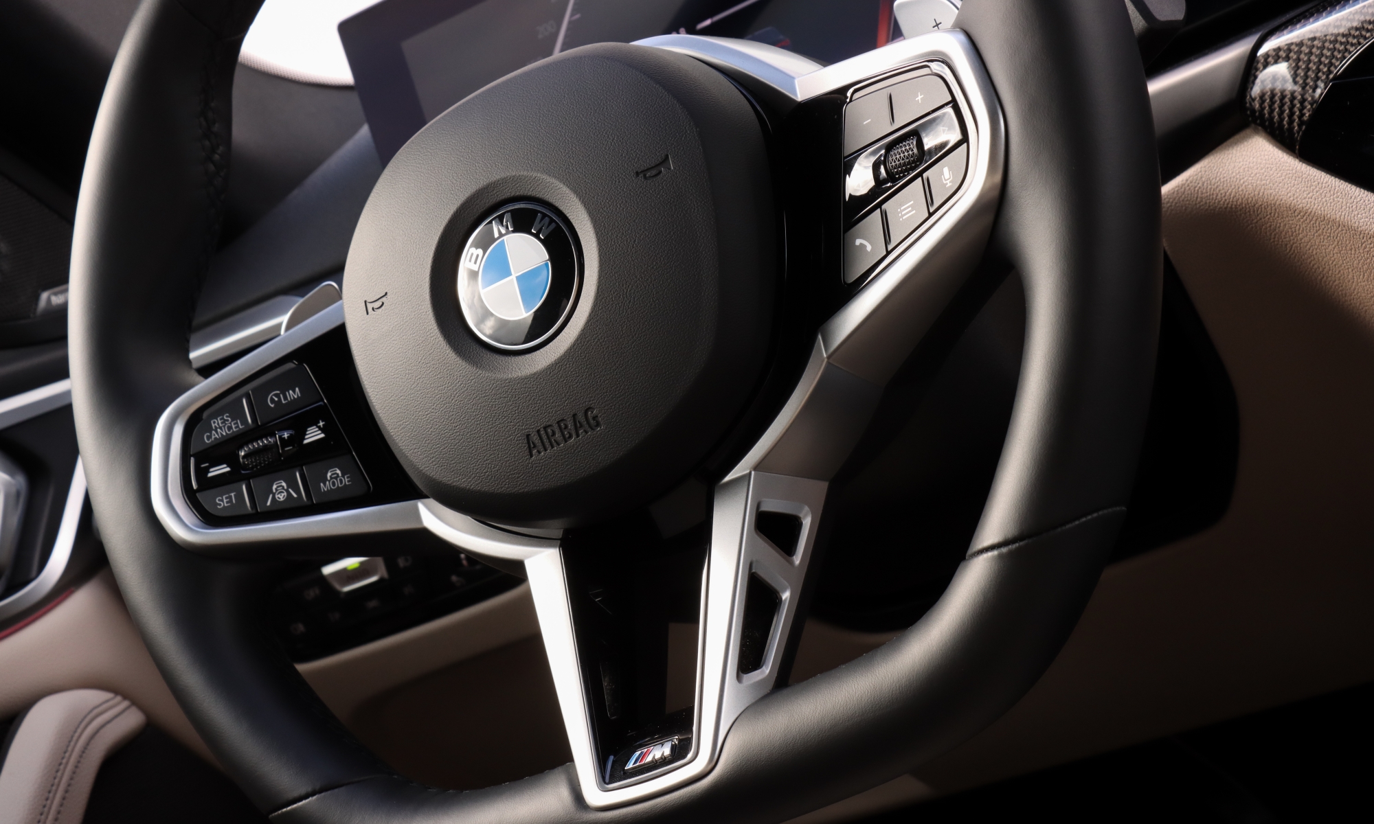 Vezeték nélkül csatlakozik a mobiltelefonhoz az Apple CarPlay (és az Android Auto is), de applikáció is van hozzá (My BMW), amivel távolról lehet rendezni a frissítést vagy állófűtést indítani a hideg téli napokon. Az iDrive tekerőgombja ott van a könyöklő előtt, de a szoftver menüje már inkább az érintőképernyős kezelésre lett kitalálva, ezért úgy könnyebb rózsaszínre állítani a hangulatvilágítást vagy elindítani a podcastot. Van benne hely az újratölthető palacknak, praktikus rekeszekbe lehet pakolni a belépőkártyát és USB-C csatlakozók vannak az utastérben, tehát kiválóan tűri hétköznapokat is.