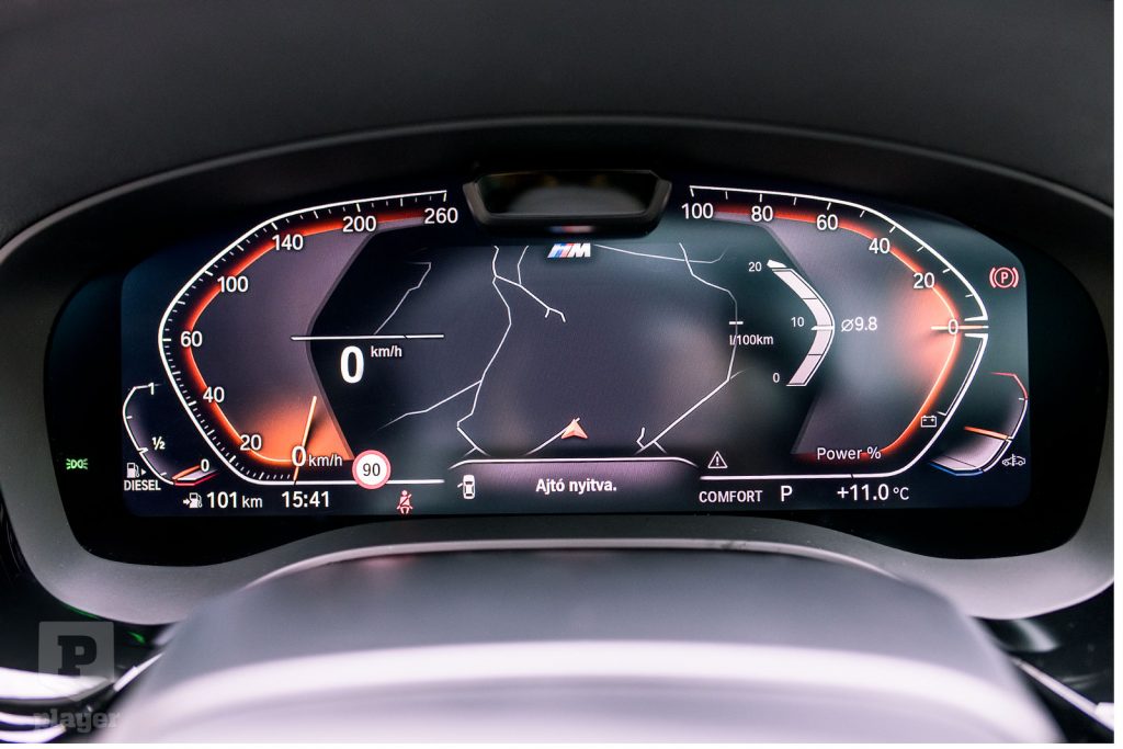 Ezzel az autóval ugyanis kényelmesen lehet akár a családdal együtt hosszú távon utazni, biztonságban, nyugalomban, csendben, bőséges erőtartalékkal, kedvező fogyasztással, úgy, mintha erre tervezték volna. Ha viszont szeretnénk a katalógusadatokat átélni, akkor abban verhetetlen. A 30d meglepő módon valóban háromliteres motort jelent, ráadásul sorhatos, 286 lóerős – az E39-esből még az M5 alatti csúcsmodell, a 40i volt éppen ennyi –, a 650 Nm nyomatékából szükség esetén az első kerekekre is jut, a kormányzásból a hátsókra is, a váltást nyolcfokozatú automata végzi, és egy 48 voltos mild-hybrid rendszer is a hajtáslánc része.