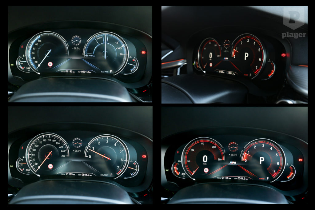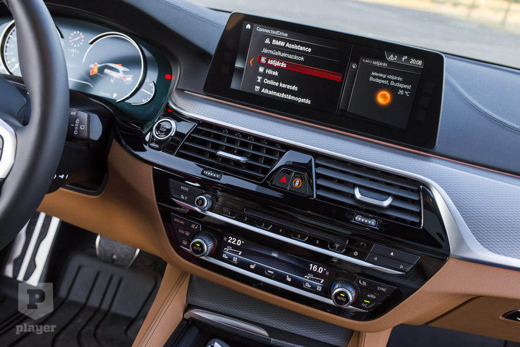 A kormány mögötti mérőórák helyett monitort találunk, ahogy az lassan már elvárható a prémiumosztályban. A BMW azonban finom fémívekkel jelzi a klasszikus, négyórás kialakítást, ezzel megvan a comfort, sport vagy eco módnak megfelelően változó kép, csak épp egy kissé kiábrándító sík képernyő helyett sokkal elegánsabb kivitelben.