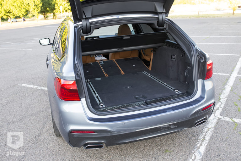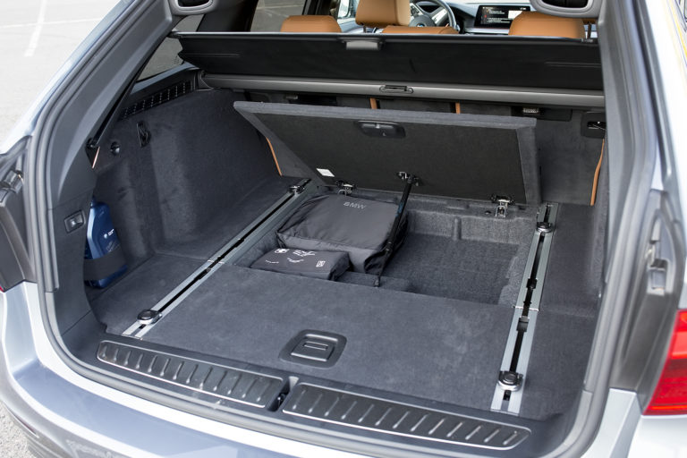 Noha érzetre tényleg sokkal inkább 7-es ez a BMW, ne felejtsük el, hogy Touring. A németek sem felejtették el, és nem csak az 570 literes térfogattal fejezték ezt ki. A hátsó szélvédő – BMW kombiktól szokott módon – külön is nyitható (ekkor a csomagtérroló automatikusan elhúzódik), sínes rendszer segíti a csomagrögzítést, még az elsősegélycsomagot és sízsákot rejtő fedél is teleszkóppal emelkedik fel, az osztottan dönthető hátsó üléstámlák lehajtásával pedig nem teljesen sík, de küszöb nélküli rakteret kapunk.