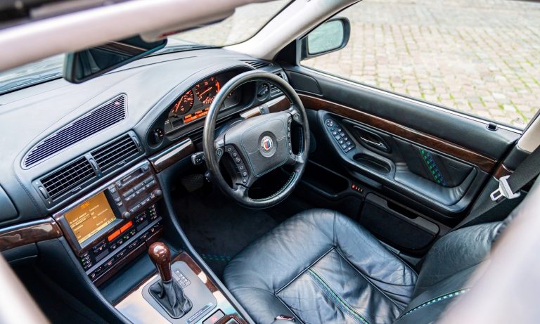 Fekete fényezését arany dekorcsík díszíti, a belterében pedig fekete bőrkárpiton az Alpinára jellemző zöld és kék színek jelennek meg, valamint elegáns fabetétek. Könnyen felismerhető a 750i-nél is erősebb B12-es, melynek 20 colos, sokküllős felnijeiről és első lökhárítójáról. Nem gyakori jelenség a korszak egyik leggyorsabb luxuslimuzinja, különösen jobbkormányos változatban, amiből kilenc darabot készített az Alpina.