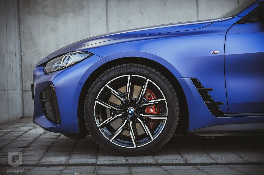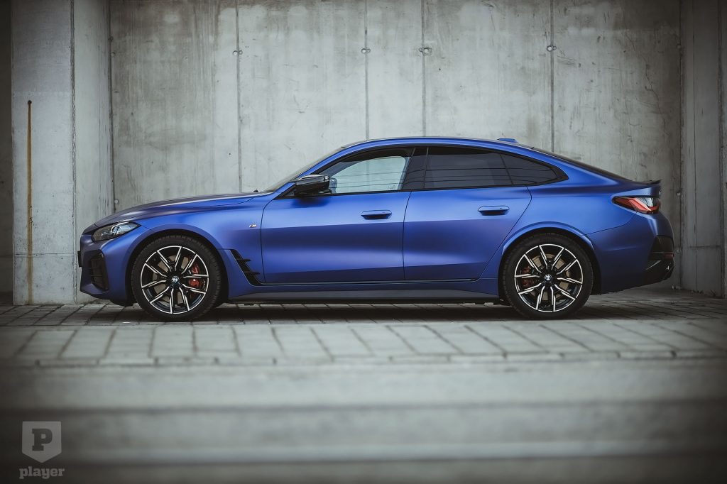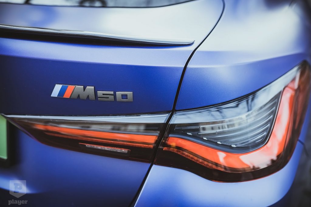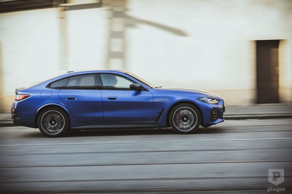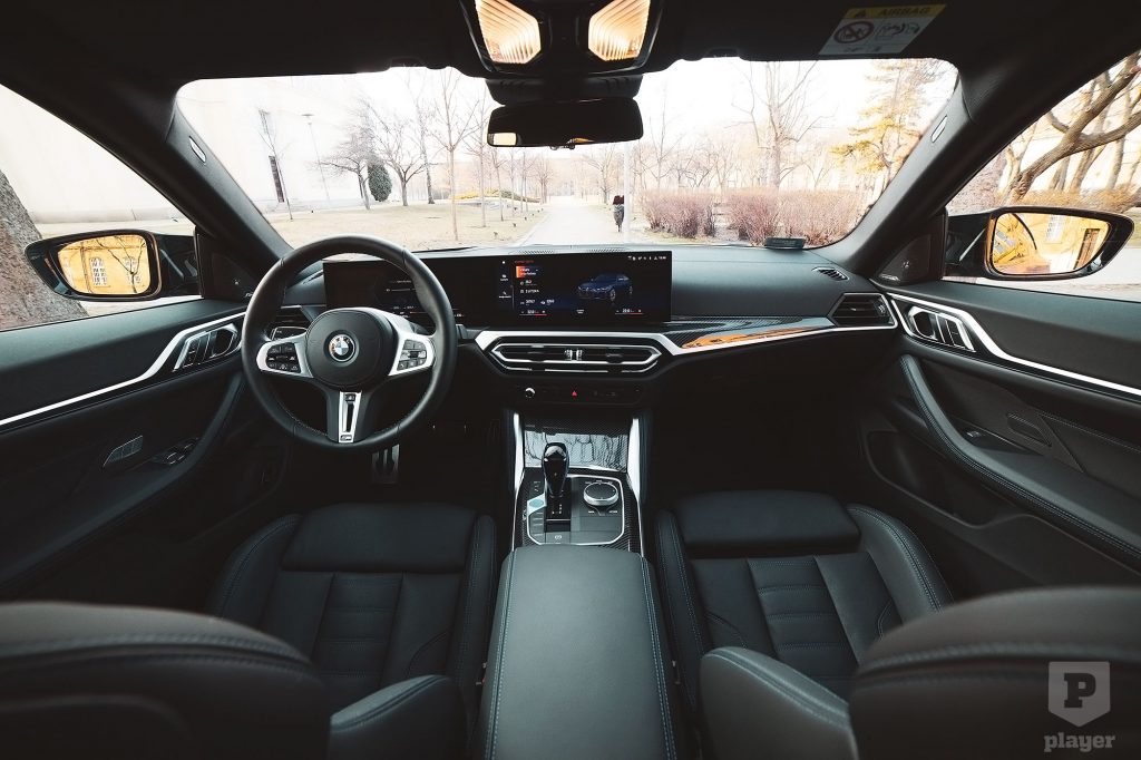 A választ az i4 M50-nek kell megadnia: ez az első olyan BMW, amelynél igazán közel egymáshoz az i és az M betű. Az i4 karosszériája jó alap, a villanyautókra jellemző praktikus, de a klasszikus autóépítési szempontok szerint se nem szép, se nem vagány forma helyett kupészerű, a fara magas, de rövid, az eleje hosszú, kifejezetten jó kiállású kocsi. A sportosságot az első lökhárító légbeömlőt imitáló betétjei, az első sárvédők kopoltyúi, a hátsók szélesítései, a nem létező kipufogók helyét jelző, diffúzoros hátsó lökhárító és a csomagtérajtó diszkrét, de aerodinamikailag fontos légterelője fokozza. Közelről a légáramlás elől gondosan elzárt hűtőmaszk árulkodik leginkább a villanyhajtási módról, de nyilvánvaló, hogy az i4-es aszerint a villanyautó-építési iskola szerint készült, amely nem hivalkodik a technológiai másságával – mint az i3-as vagy a hibrid i8-as –, hanem a dizájnja alapján akár benzines vagy dízel is lehetne.