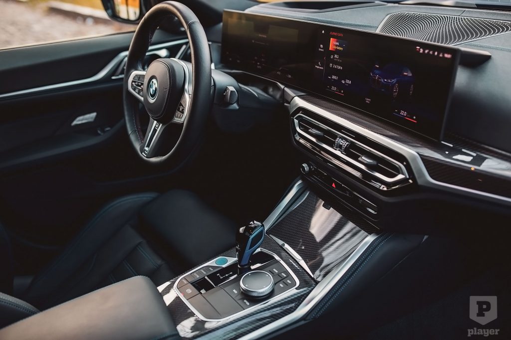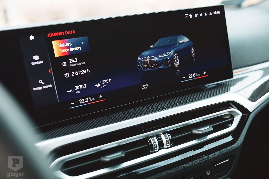 Élményfaktor a hang is, ami mindig fontos eleme volt a sportautózásnak, de már nem kipufogóhangolással és motorkarakterisztikával lehet szerkeszteni, hanem zeneszerzővel, esetünkben Hans Zimmerrel. Az i4 külseje-belseje nem futurisztikus, de a sportmódban a hang bőven kompenzál (a videó utolsó tíz másodpercében hallható igazán).