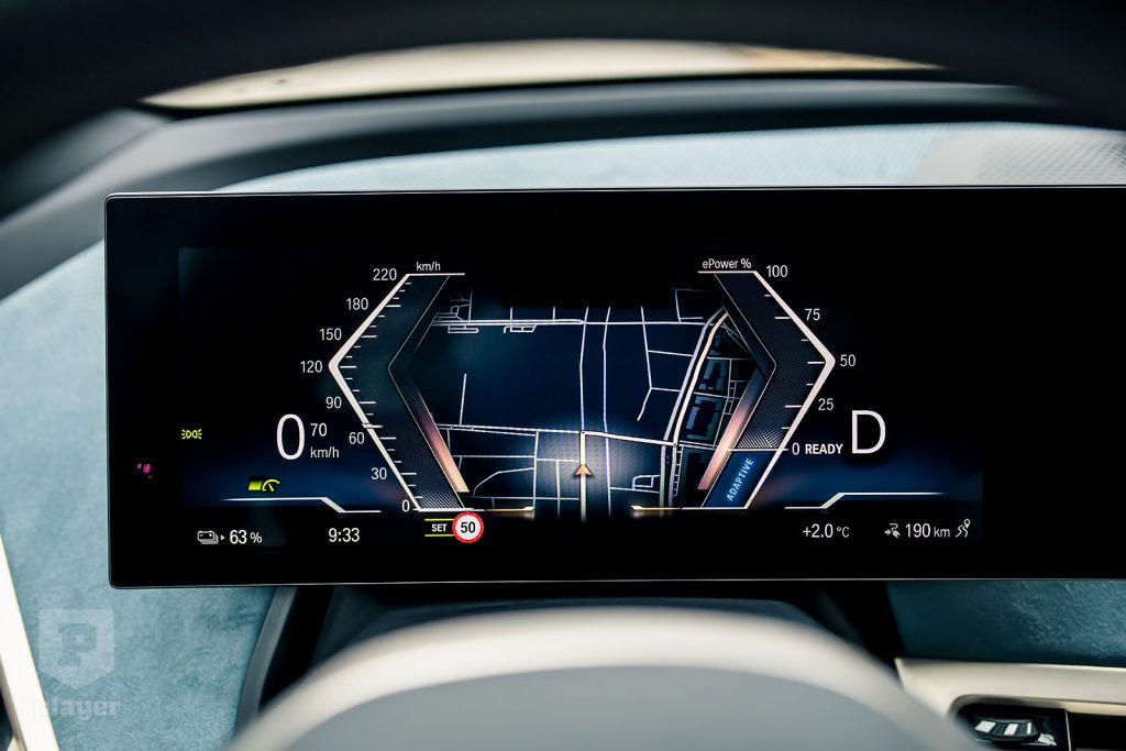 A vezetéstámogató rendszerek mai tudása mellett jellemzően akkor vagyok a legboldogabb, ha ezek a rendszerek egyáltalán nem csinálnak soha semmit, amikor én vezetek. A BMW iX viszont egy ilyen asszisztens-dolgot nagyon jól leprogramozott: a kigurulások, lassítások automatikus intézését. Az egypedálos vezetésnek eddig nem sok értelmét láttam semmilyen villanyautóban; miért jó az, hogy folyton egyensúlyoznom kell azzal az egy pedállal, hogy mennyire szeretnék gyorsulni vagy lassulni? Az iX viszont túllépett ezen. Ha felengedjük a gázpedált, a kocsi gurul – ha nincs előtte semmi. (A virtuális motorfék ereje persze ennél a kocsinál is állítható.) Ha viszont van előttünk egy másik autó vagy kezdjük beérni a feltorlódott sort, a BMW finoman, puhán lassít, és kikapcsolt tempomattal is képes egyedül, ügyesen felvenni a követett forgalom sebességet vagy megállni a pirosnál.
