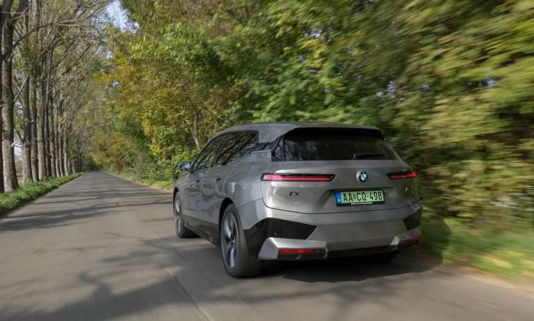 Még a sportosabb iX M60-as is nagyon magabiztosan húzza simábbra a hitvány utakat, az összkerékkormányzással pedig váratlanul fordulékony, így a kormánya mögött nem érződik akkora autónak, mint valójában. Szögletes kormánya jól jelzi, hogy nem az önfeledt gépészkedésre készült az autó, engem kifejezetten bosszantott, hogy kanyarodáskor mindig máshová esik a karimája.