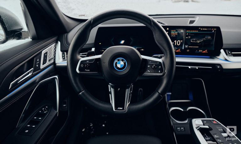A benzines kicsit lustább jószág, és az alacsonyabb nyomaték miatt semlegesebb viselkedésű, nagyobb küzdelem egy tisztességes farolás kivitelezése. A tesztpályák közötti jövés-menést is az iX1-essel éltem meg nagyobb élménynek. A benzines duplakuplungos váltója nem a legnagyobb barátom, az elektromos X1-ben nincs váltás, nincs baj. De cserébe nincs benzinszag és izgalmasan forgó motor sem, ami azért még mindig velejárója a tisztességes élményű autózásnak. Bár annak is van szépsége, ha a fehér hegyoldalt nem terítjük be szmoggal. A benzines mellé pedig húzhatunk egy strigulát azért, mert 50 literrel tágasabb a csomagtere.